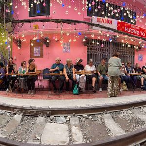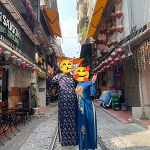 アオザイ着てトレインストリートで電車待ちながら写真撮りまくりは楽しい経験でした。東河門、ロンビエン橋は私達だけではバイクと車にぶつからずには辿り着けませんよー。きれいなお店でブンチヤ食べてアオザイ返してホテルに送ってもらい終了でした。夫婦共に初めてのベトナムだったので送迎付きでガイドさんと運転手さんがいい方で安心でした。ガイドさん、一生懸命案内してくださりありがとうございました!