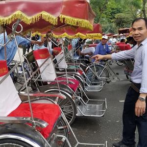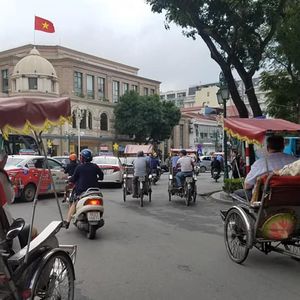 ホテルの迎えは時間通りでした、日本語ガイドはベトナム人の若いお兄ちゃんで言葉の意思疎通は6割位でしたホテル前からシクロで出発、2人乗りですが1人1台利用で最初は贅沢で良いなぁと思いましたが日本語ガイドは同行せず「こんにちわ」位しか話せないシクロのオジさんと1時間ですから…1台に2人で乗った方が話しながら観光出来て良かったのかなぁと思いました途中、大聖堂で降りて写真撮影したり、所々で指を差して片言の日本語で案内してくれたので旅行初日でも有ったので市内を見て回るのには良かったです。フランス料理は店も高級感があり味もグッド⤴️でした、その後タクシー移動でホテルの20階にあるバー️へ屋外が雰囲気があり薄暗い席でカクテルを飲みながらベトナムの夜景は最高でした。最終日にフランス料理と夜景で締めるのも有りかもですね。