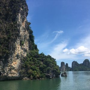 クルーズ中、船の甲板に出たり2階に登って外を見ることができ、緑の水の色も奇岩の景色もきれいで、気持ちよかったです。