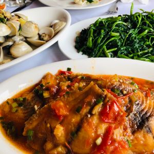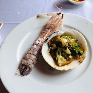 昼食は船の中で海鮮料理、夕食は雰囲気の良い店で、美味しかったです。