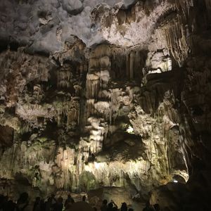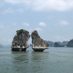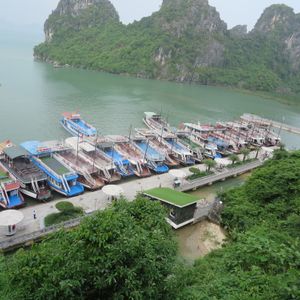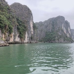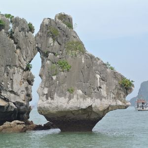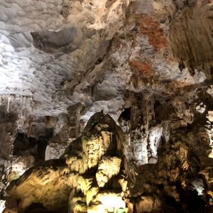 ハロン湾の景色については、満足しました。様々な形の岩が遠くまでたくさんあり、高さはないものの、船が動くに連れて変わる景色や形に色々な発見をし、親子で楽しみました。ゴリラの形をした岩も可愛らしいですし、夫婦岩は裏側にまわると魚の形に見えます。瞬間的にしか楽しめないので、ぜひ見逃さずデッキから楽しんでくださいね。鍾乳洞はカラフルなライトアップを期待していたのですが、他のツアーグループがレーザーポインターを使って説明中だった為か、見ることができませんでした。規模も小さく、特筆することはありません。