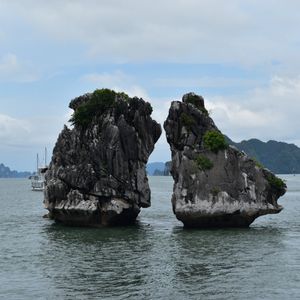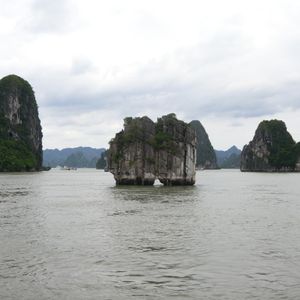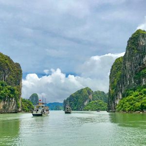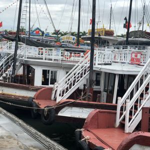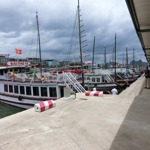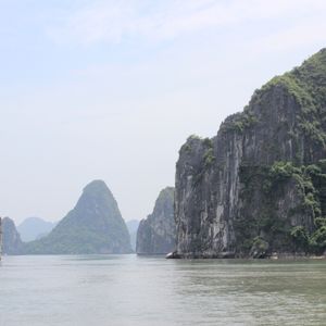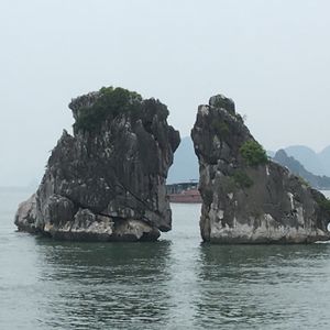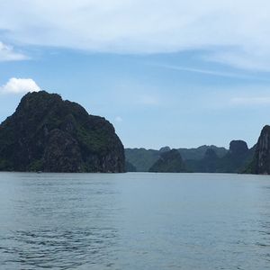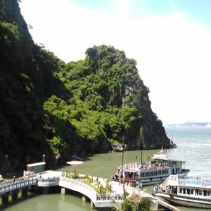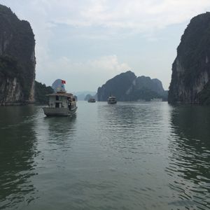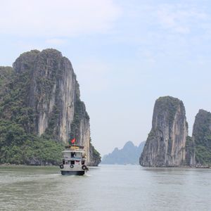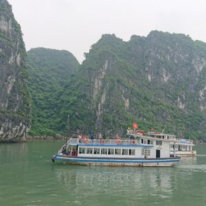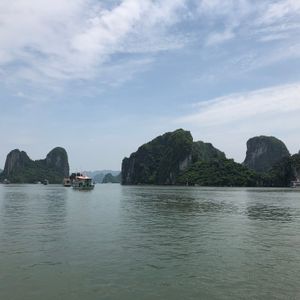 ハノイから3時間半かけての移動でしたが、冷房が効いて快適な車内とガイドさんのベトナムのお話、途中休憩で立ち寄る大きなお土産屋さん、道中の景色も楽しみながらで移動時間はそこまで長く感じませんでした。立ち寄るお土産屋さんは値段が高めです。ハロン湾に到着後、かわいらしい船に乗船。船のお手洗いは綺麗でした。冷房は効いていませんが扇風機がついています。日本では見ることができない景色をゆったりと眺めながらのクルーズはとても良かったです。乗船後すぐに出されるシーフードの食事もおいしく、種類もあり楽しめました。途中下船して訪れる鍾乳洞、こちらも神秘的で綺麗でした。1日かけてのツアーですが、参加して良かったです。
