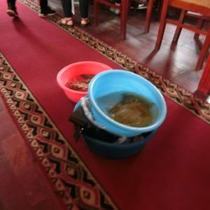 早朝にホテルで小型のバンにピックアップされ、ノンストップでハロン湾へ3時間。とにかく遠かったです。ドライバーの運転も荒いので後部座席の私は車酔い寸前でした。お昼前にやっと着いたかと思えば、「天候不順のため出港しません」と。港は良いお天気なんですが…。港近くのレストランで食事を取り、帰りの3時間もしんどかったです。クルーズの代わりにバッチャン村に寄りましたが、疲れ切っていたことと、観光地値段のため買い物はしませんでした。