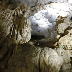一人でツアーに参加しました。片道3時間半?ぐらいで、途中トイレ休憩をかねてお土産屋さんに寄りました。トイレはきれいでした。バスは多少揺れるので、バス酔いされる方は酔い止めの薬は必須だと思います。着いてからはガイドさんさの指示に従って乗船しました。すぐにお昼ご飯が準備されましたが、写真を撮ったり、ご飯を食べたりと自由な感じでした。そして、だいたい食べ終わったら、みんな自由に過ごしていました。40分ぐらいしてから、洞窟見学でした。洞窟は広くてきれいで、とてもよかったです。写真もたくさん撮れました。見学はだいたい30分ぐらいだったと思います。そしてまた船に乗ってバスに揺られて帰ってきました。一人での参加でしたが、全然気にならず楽しめました。