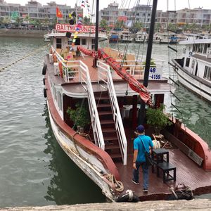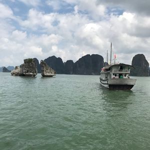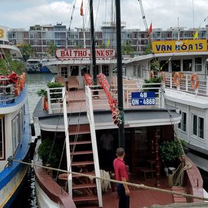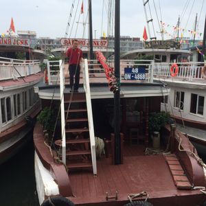 ハロン湾に着くと乗船。白くてレトロな船でした。空調は扇風機が回ってるくらい。ちょっと暑いかな。トイレは綺麗でした!