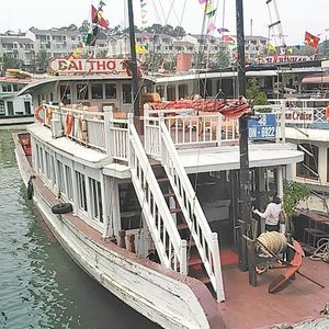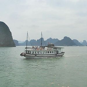 ガイドさんがとても親切で優しい方でした。料理は、シーフード料理を同じテーブルのみんなで取り分けて食べるような形式で、楽しかったです。船の上で食事をしながら、ハロン湾をすすみ、その後は、洞窟に入って鍾乳洞を見ました。鍾乳洞は、たくさん階段があるので、靴を履いていった方がいいと思います。また、行き帰りのバスは、結構長いのですが、途中休憩で、お土産ショップによります。色々なものが置いてあるので、楽しめると思います。