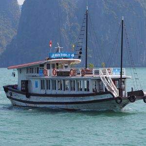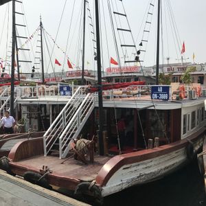 ハロン湾ツアーに参加するためにベトナムを訪れました。バスで片道3~4時間かかりましたが、バスの運転も丁寧でしたし、土産物屋でのトイレ休憩も押し売りなどもなく、往復の移動は想像以上に快適でした。ハロン湾クルーズの昼食では伝統的なベトナムの海鮮料理が楽しめ、満足しました。何より、クルーズ船そのものが非常にきれいで、トイレも快適なものでした。また、デッキに出ると気持ちよく、デッキチェアに寝そべると優雅なクルーズ気分を味わうことができました。ベトナム人のガイドさんも手を抜くことなく、世話をしてくださいました。低価格でしたので心配でしたが、このツアーに参加して大正解でした!