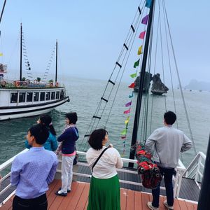 ハロン湾に到着して、景色はとても綺麗で船はあまり揺れず過ごしやすかったし、写真のポイント、岩の説明がわかりやすかったです。また、ガイドさんから写真を撮ろうか?という声かけが嬉しかったです。