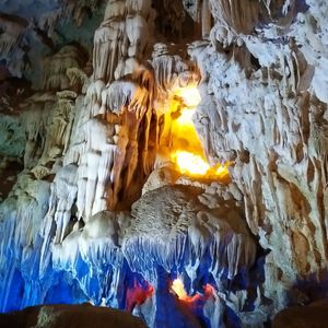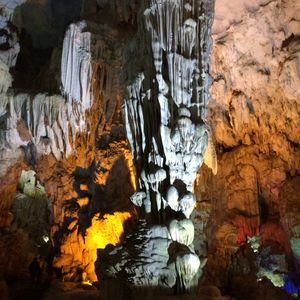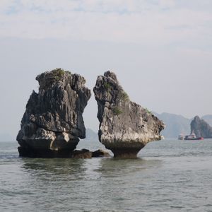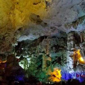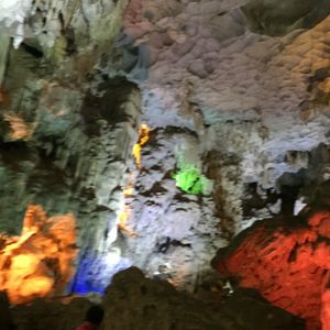 クルーズでは、有名な香炉岩、夫婦岩(闘鶏岩)を目の前に見つつ、進んで行きます。船の上に出たりするのは自由だし、波は穏やかなので、世界遺産のど真ん中を、風を感じながら、とても気持ちの良いクルーズでした。そして、ティエンクン鍾乳洞。ライトアップが派手で面白かったけど、スケールの大きさや、歴史を感じる佇まいに、感動しました。中は一年通して20℃以上あるという、日本の鍾乳洞とは違う環境でしたが、暖かく歩きやすかったです。日帰りツアーなので、ハロン湾を高台から眺望することは出来ないので、高いところから観たい人は、ゆっくりとしたスケジュールで行くと良いかもしれません。