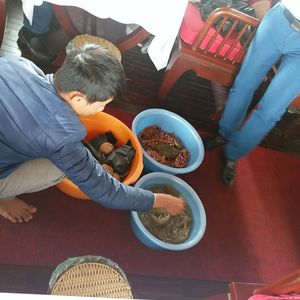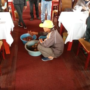 ガイドさんが各テーブルを回っての、モッ、ハーイ、バ、 ヨー!(1、2、3、乾杯!)