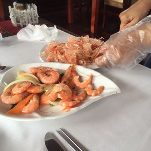 ハロン湾では、出港後おいしいシーフードを堪能。私は酔いやすく、船の揺れを心配しましたが、ほとんど揺れず快適でした。食事は6人が1テーブルでしたが、ご一緒したツアーの方とも途中から談笑したり、お料理も1皿をシェアしていく形でしたが、どれもとてもおいしかったです。