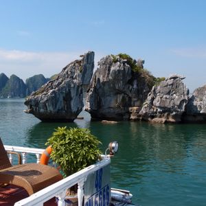 ガイドさんが、「ここで007の撮影をしました」「ここはシン・ゴジラの撮影をしました」とか、「お札に印字されいる岩はこちらですよ!」など、それぞれのスポットで声をかけてくださり、写真をたくさんとりました。船の上のデッキにもあがることができ、おだやかなハロン湾の眺めと、気持ちのいい風に癒されました。