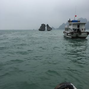 ハロン湾についたら、乗船していざ、出発。出港してしばらくしたらシーフード料理のランチ。知らない人同士で大皿を囲みます。当初は気まずかったけど…黙々と食べていくうちに気にならなくなります。お味は、塩味中心で全く期待していませんでしたが…美味しい!普通に食べることができました。