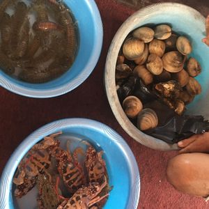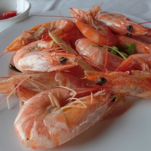 最初は海老を盛ったお皿と貝を盛ったお皿がでてきて、6人掛けのテーブルでシェアしました。