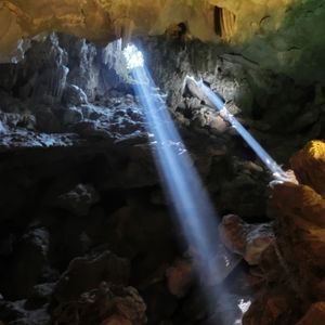 最終日にこのツアーを利用させていただきました。前々日に行ったミーソン遺跡ツアーが英語ガイドだったためよくわからなかったので、こちらの方を日本語ガイドのツアーにして良かったなと思います。当日は、快晴で景色もよくデッキに出ると暑くはありましたが、室内は扇風機が付いており快適に過ごせました。鍾乳洞では、いろんな説明をしてくださいましたが、たくさんの岩石が並んでいるところについては説明が少なかったように感じます。