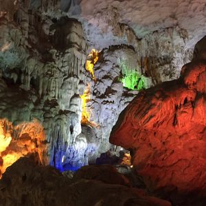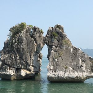 マイクロバスで片道4時間弱、道路の整備が悪いのでガタンガタン揺れましたが、酔い止めを飲んで乗車したので問題なかったです。ハロン湾は静かでローカルで自然豊か。途中で上陸した鍾乳洞も圧巻でした。