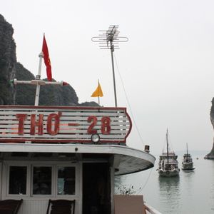 観光当日、ハノイからハロン湾に向かっているバスの中で、午前中は風が強く、船が出ていないとの情報でかなり焦りましたが、午後はなんとか出港することができてよかったです☆思ったより立派な船でした!