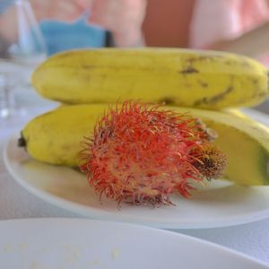 また、小舟で寄ってきた船からは小さな女の子がバナナとライチのような果物を持って窓を開けてきました。そして、私たちのテーブルに置いて「2ドル」とお金を要求。テーブルに置かれちゃったので渡すしかなく、おいしく果物を頂きました。