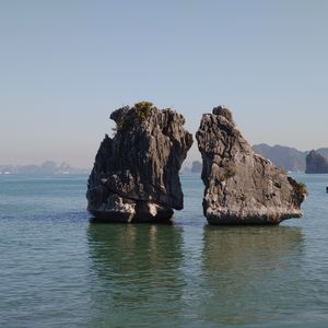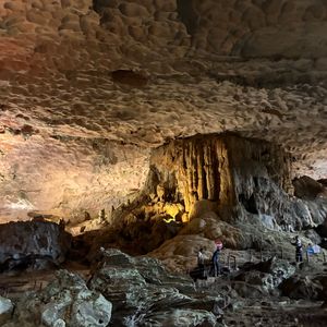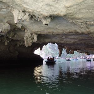 ハロン湾内の様々な形の多数の島々、圧倒的な広大さに感動。船は揺れず船酔いを心配していた妻も大丈夫でした。バンブーボートでの洞窟潜りはシーカヤックとの混雑で大騒ぎ、盛り上がりました。鍾乳洞はどこも乾いていて、日本のものと違った雰囲気でした。自然文化遺産を快適に巡る事が出来ました。