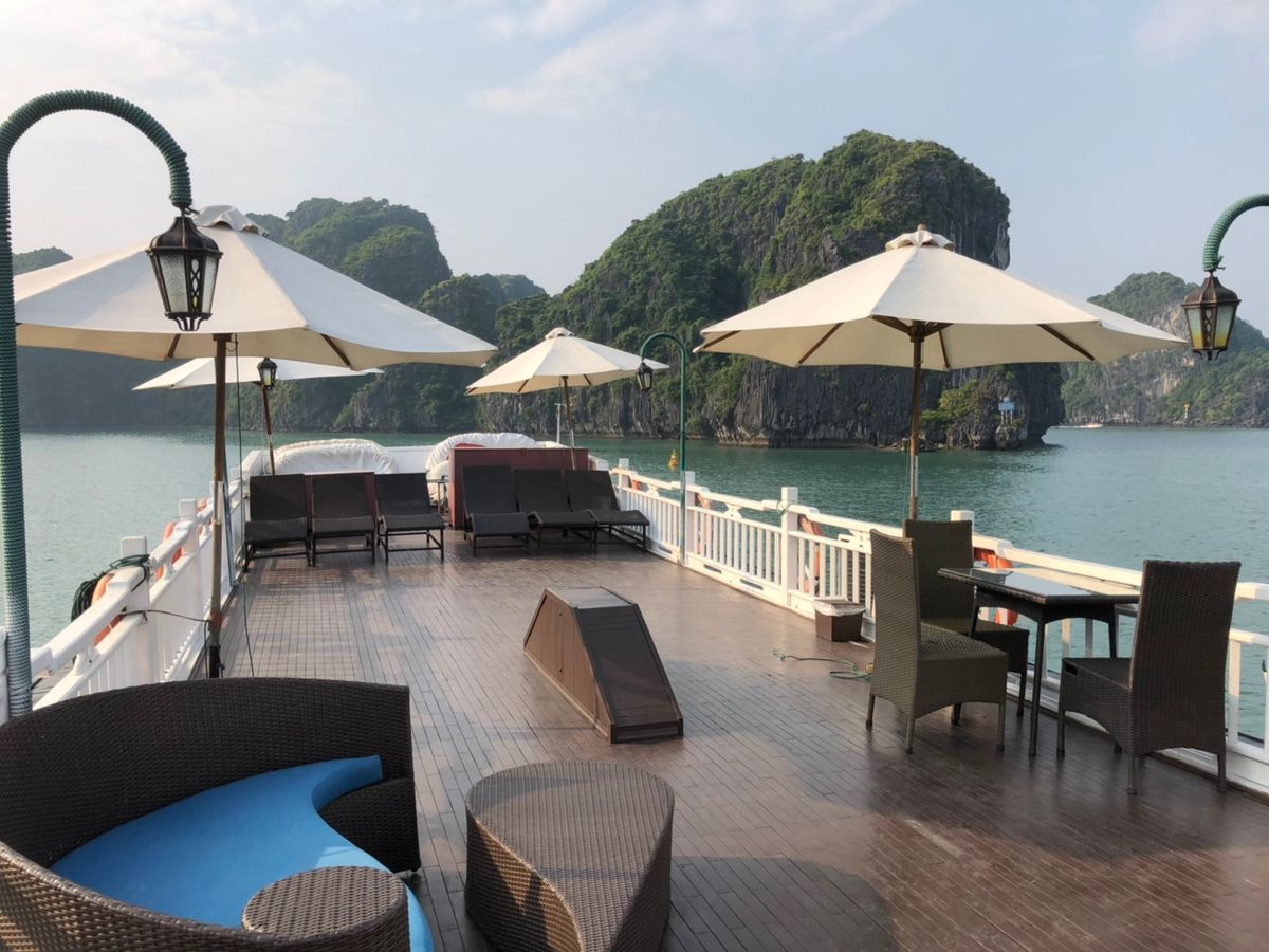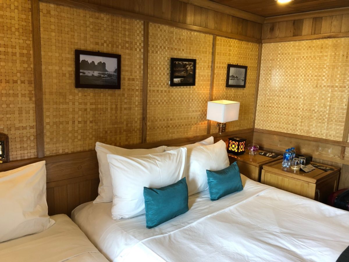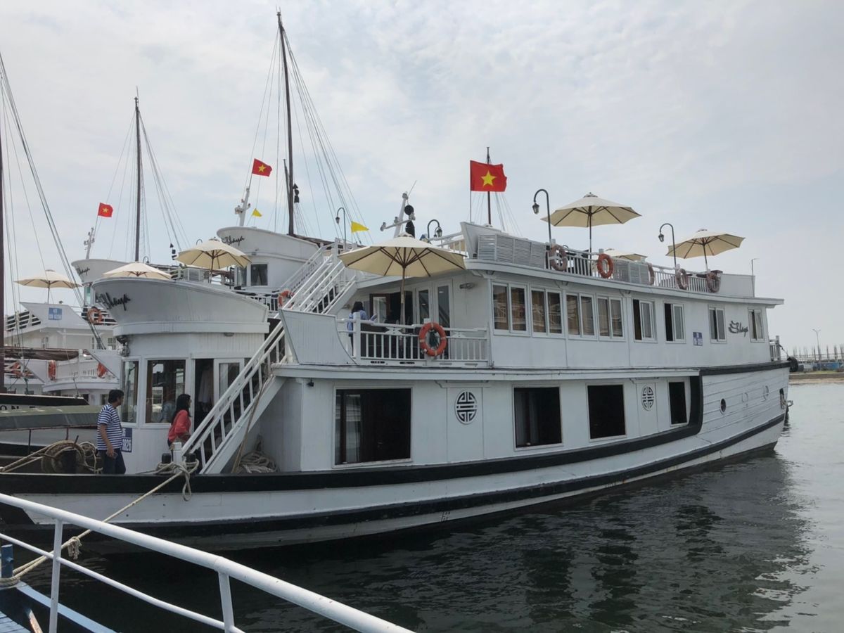 ハロン湾は素晴らしく、小さな島々、鍾乳洞や竹の船やカヤック体験など一度は訪れて損はないです。部屋はスイートに泊まりました。部屋の家具や広いベランダは良かったんですが、船首がタイタニックの真似をする他のお客さんが次々と現れて、ベランダでくつろいでいても落ち着かない感じで、中国人の団体客から写真を撮ってくれと言われて、わざわざ部屋を出て撮りに行く始末。。全体的に古くて洗面台は壊れていて、水が流れず。。結構なお値段だった割には飲み物が全て別で高いです。スタッフは皆さん良かったんですが、唯一残念だったのはマネージャが最初に船内は喫煙禁止、ベランダで喫煙し必ず灰皿に捨てるようにときつくお客さんに言ってあるのにレストランのスタッフが夜遅くにタバコを一本海に捨てたところを見てしまったこと。あとは片道2時間以上移動するのに、ピックアップしてくれるホテルが限られていて、先に泊まるホテルに来てくれるか確認してからホテルを決めないと集合場所まで移動したり、帰りも自分でタクシーを拾わないといけないので大変でした。ハロン湾は素晴らしいけど、ツアーの選択は個人の事情に合わせてよく吟味が必要です。客船が何十隻もあるので、内容も様々です。