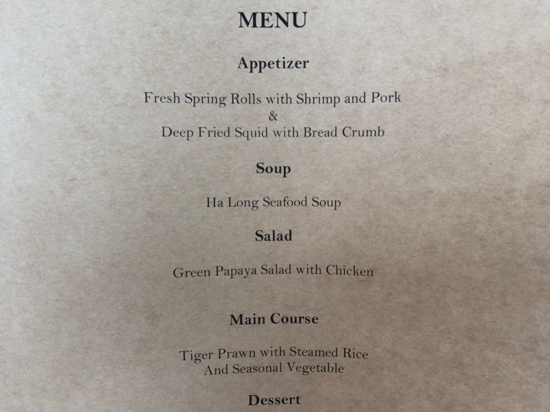 ヘリテージ号のスタッフは、清掃の方まで皆さん素敵でした。英語が苦手な私ですが、楽しめました。また、つたないベトナム語にもお付き合いいただきおしゃべりも楽しかったです。