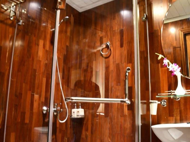 ハノイの往復のバスは座席が広くて快適でした。途中の休憩は、出発時間ギリギリまでバスのドアが開かないので、焦って10分前集合などしなくても大丈夫です。ゆっくり休憩したり、SAのお菓子売り場など見ていましょう。船は清潔でした。部屋はバスタブは無し。取ってつけたような小さなベランダがありました。アクティビティは色々あって良かったですが、ティートップ島では登山、下山の人が多すぎて混雑で頂上まで上がる時間はありませんので、約1時間ボーっとしているだけになります。泳がないなら本など持っていかれるといいと思います。料理は美味しかったですが、ビュッフェは果物やスイーツ類は補充が無いので先に取った方が良いです。アルコールが有料なのは構いませんが、この価格でコーヒーや紅茶までチャージされるのはさすがに無しでしょと思いました。それくらいいつでも好きな時に飲めるようにしておけばいいのに。コスパはそれほど良くはありませんが、クルーズ自体は良いので時間が許せば慌ただしい日帰りよりも船上で1泊される事をお勧めします。