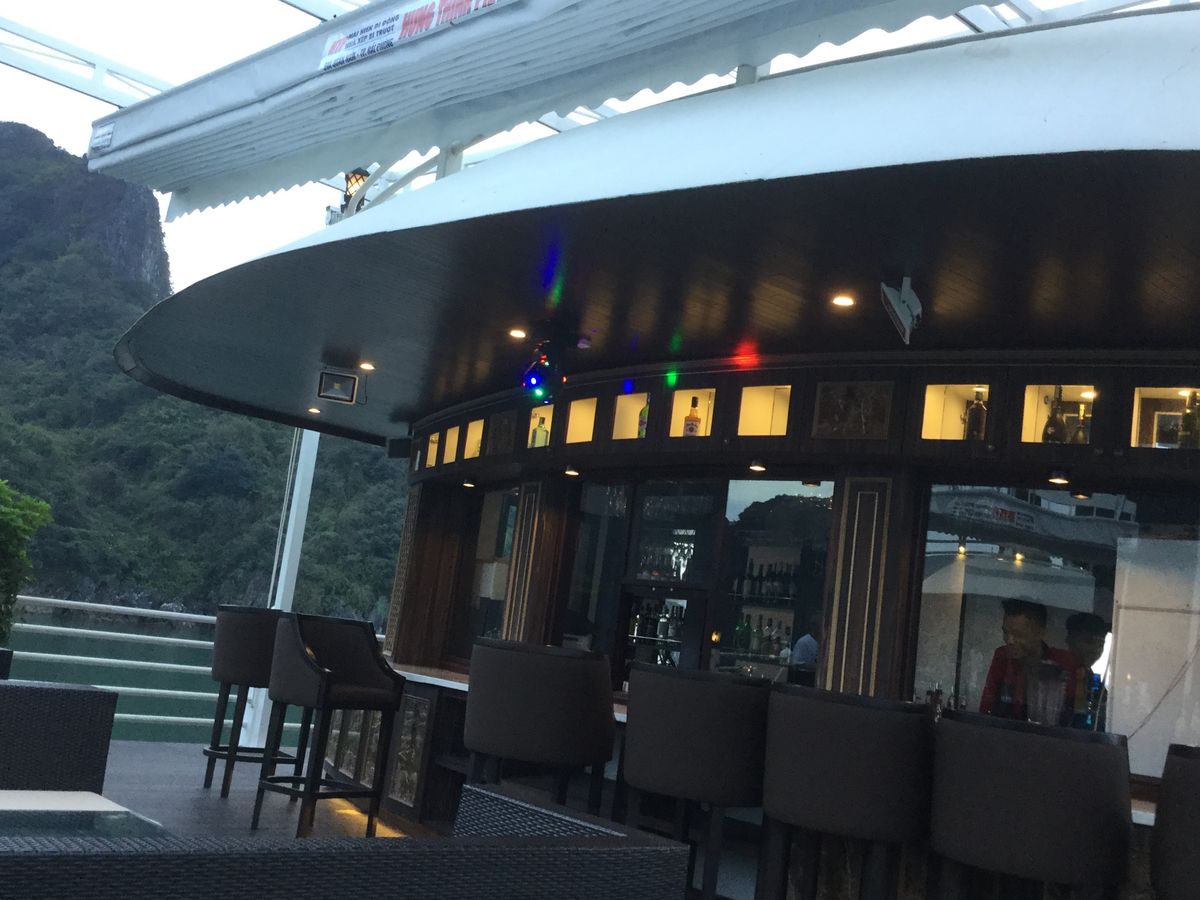 ハロン湾の壮大な景観の中で味わうビール、お食事は格別かと