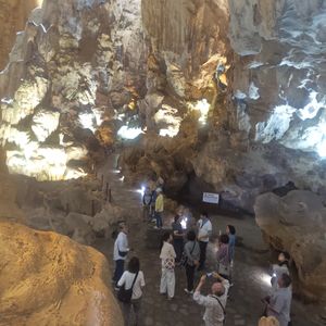 ハロン湾内の様々な形の多数の島々、圧倒的な広大さに感動。船は揺れず船酔いを心配していた妻も大丈夫でした。バンブーボートでの洞窟潜りはシーカヤックとの混雑で大騒ぎ、盛り上がりました。鍾乳洞はどこも乾いていて、日本のものと違った雰囲気でした。自然文化遺産を快適に巡る事が出来ました。