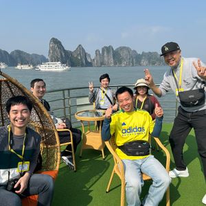 ハノイからバスで2時間、中型バスでゆったり移動できます。ハロン湾に到着すると海鮮ランチのおもてなし。お腹一杯食べることができました。ワインもリーズナブルで満足。いよいよハロン湾クルーズに出発。初めて見る絶景に感動しました。鍾乳洞見学、カヤック、バンブーボートがあり、最後はサンセットパーティーありの盛りだくさん。帰りの高速道路での休憩所のフォーもおいしかったです。最高の日になりました。是非、ハノイに行ったらハロン湾クルーズを体験してみてくだだい。きっと良い思い出になりますよ。