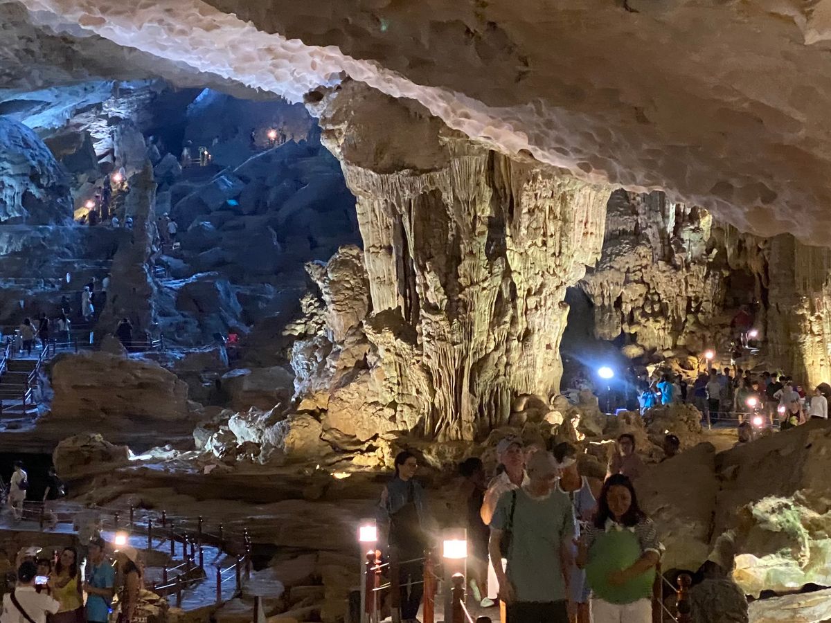 続いて、スンソット洞窟の見学。こちらは入口まで長蛇の列でちょっとげんなりでしたが、中に入ってみてびっくり。今まで見たことのない規模の鍾乳洞が広がって、更にここでは日本語のガイドさんの丁寧な説明と、写真撮影を各スポットで撮ってもらえて、これぞ日本語のガイドさん付きツアーという感じで、今回のツアーの中で一番良いポイントになりました。