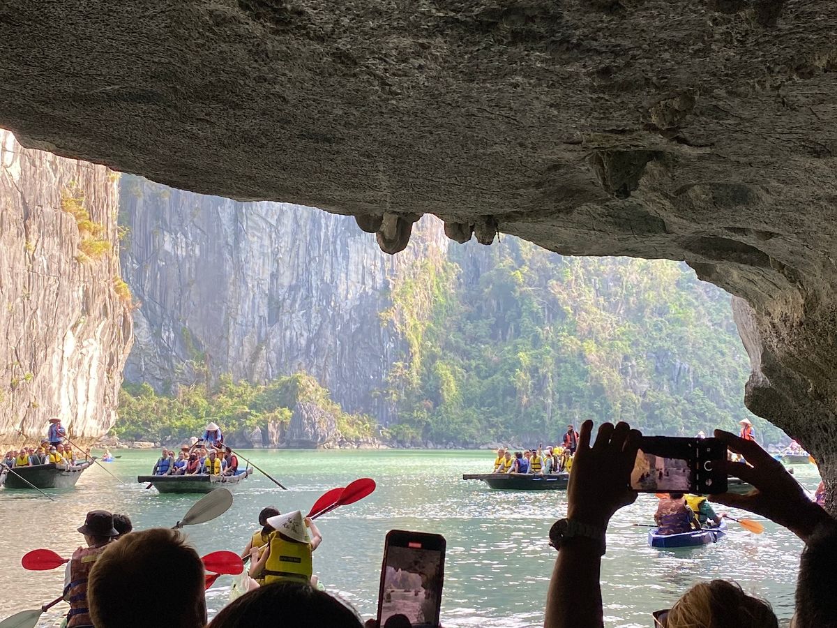 もし、カヤックやバンブーボート以外のオプショナルの選択肢にスピードボートがあったら必ず乗るべきだと思います。250kドン必要ですが、その価値ありです。とても迫力のあるアトラクションで楽しいですし、ガイドさんも同乗するので色んな岩の説明もしてもらうことができます。そのあとバンブーボートに乗る時間も貰えるので、是非参加して下さいね!
