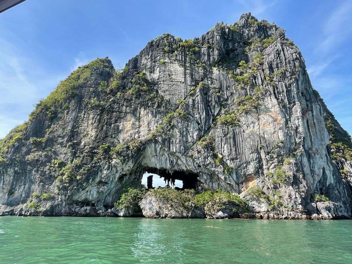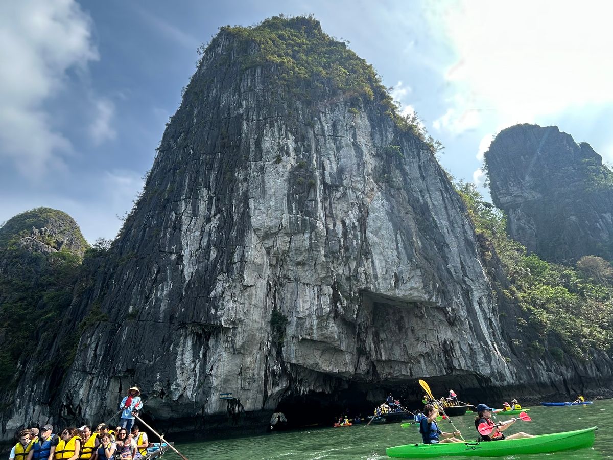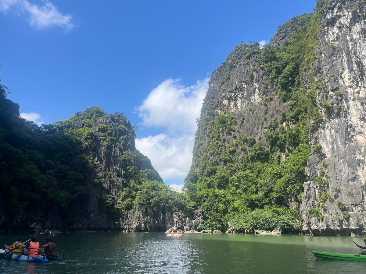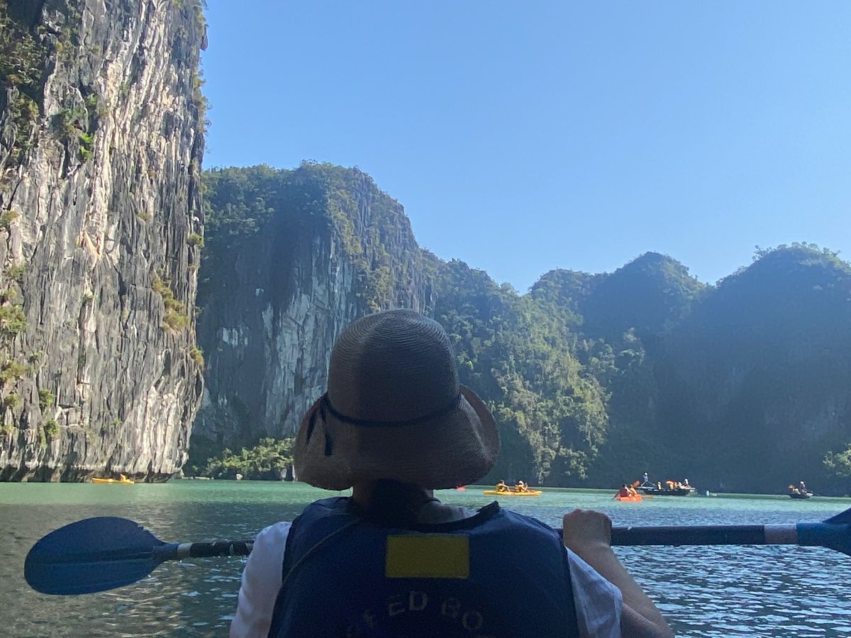 有料ですが、高速船に乗り換えてスリル満点の運転でした。船長の転覆しそうになりながらの運転が遊園地の絶叫マシーンのようで楽しかったです。その後子供達はカヌー体験、自分はバンブーボートで湾ないの観光。このボートの船頭さんもわざと揺らすなどしてお客さんを楽しませてくれました。400段もの階段を登り岩山内の洞窟探検は地球の太古の歴史を感じることができます。観光客が多く行くのをやめようと思いましたが、行ってよかったです。見る価値あります。