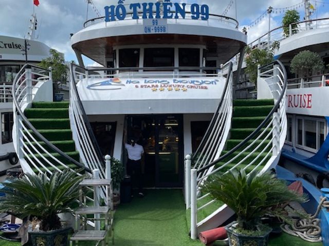英語ツアーでしたが、日本人の方も多く参加していました。英語苦手でも、集合時間だけ注意して聞いていれば大丈夫だと思います。ハロン湾はすごく美しい景色で、夕日を浴びながらのクルーズも幻想的でした。オススメします。