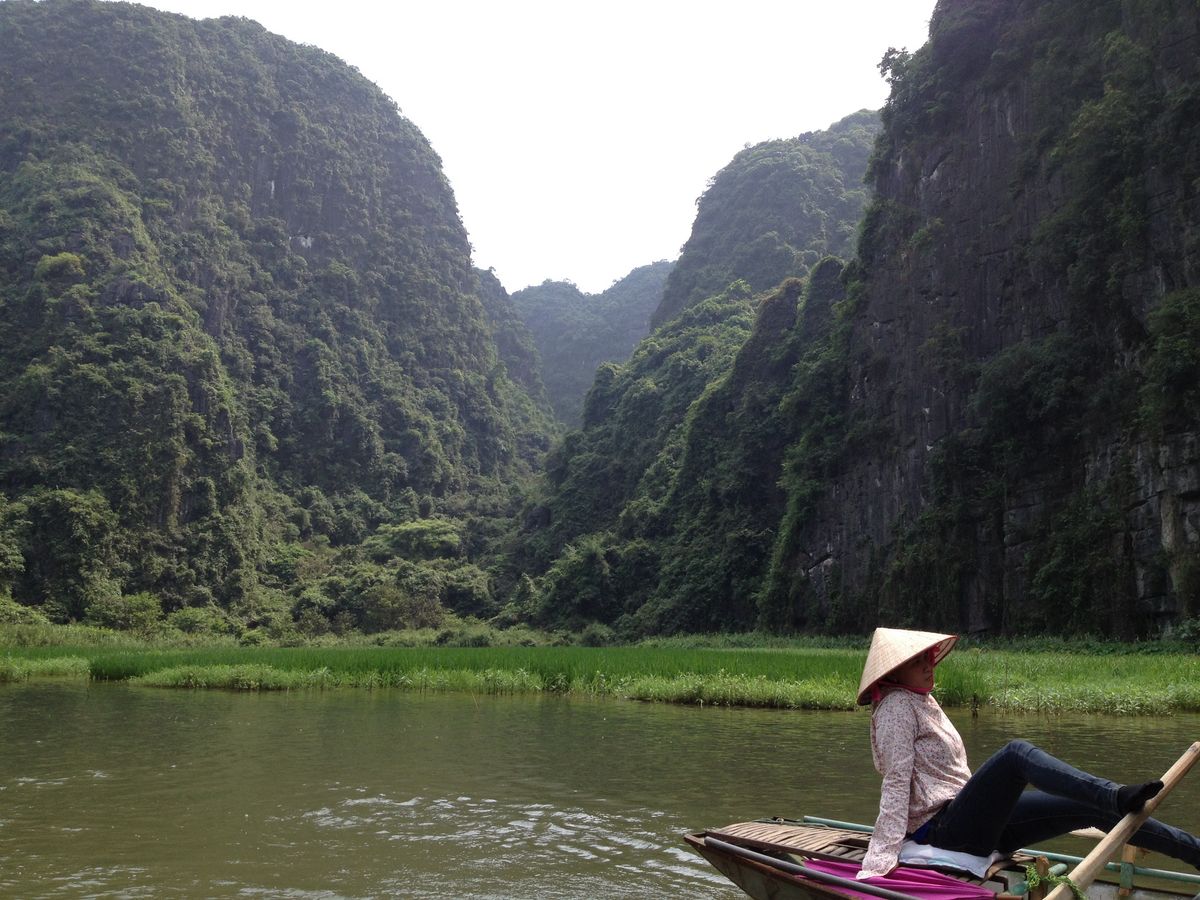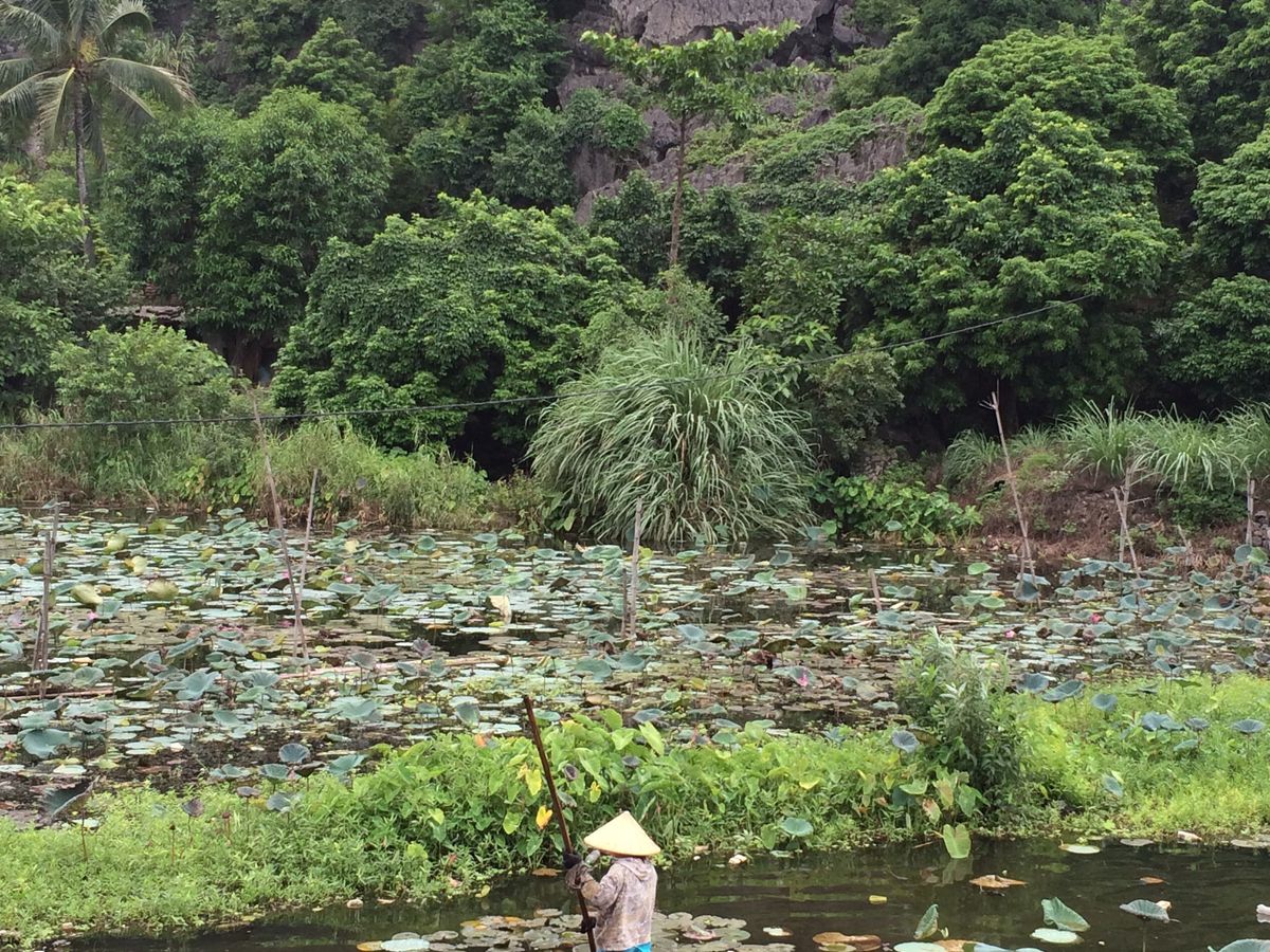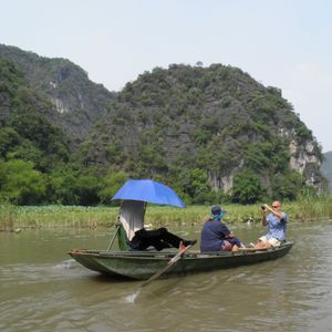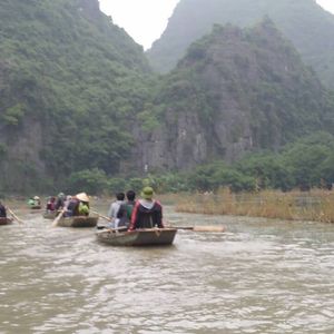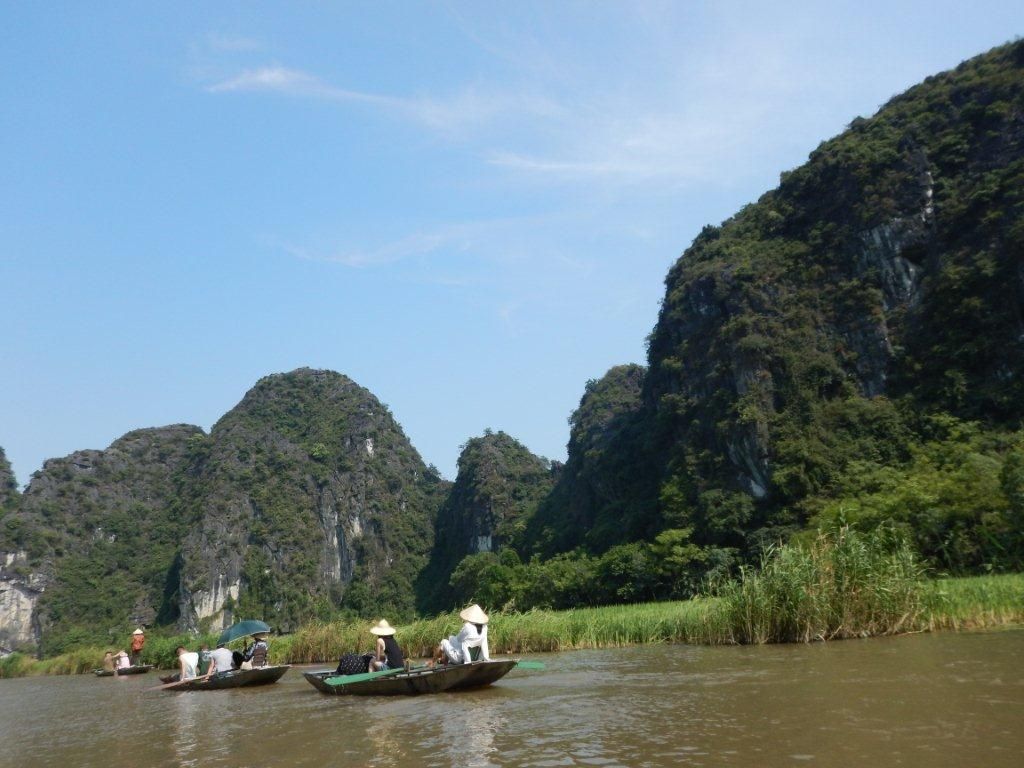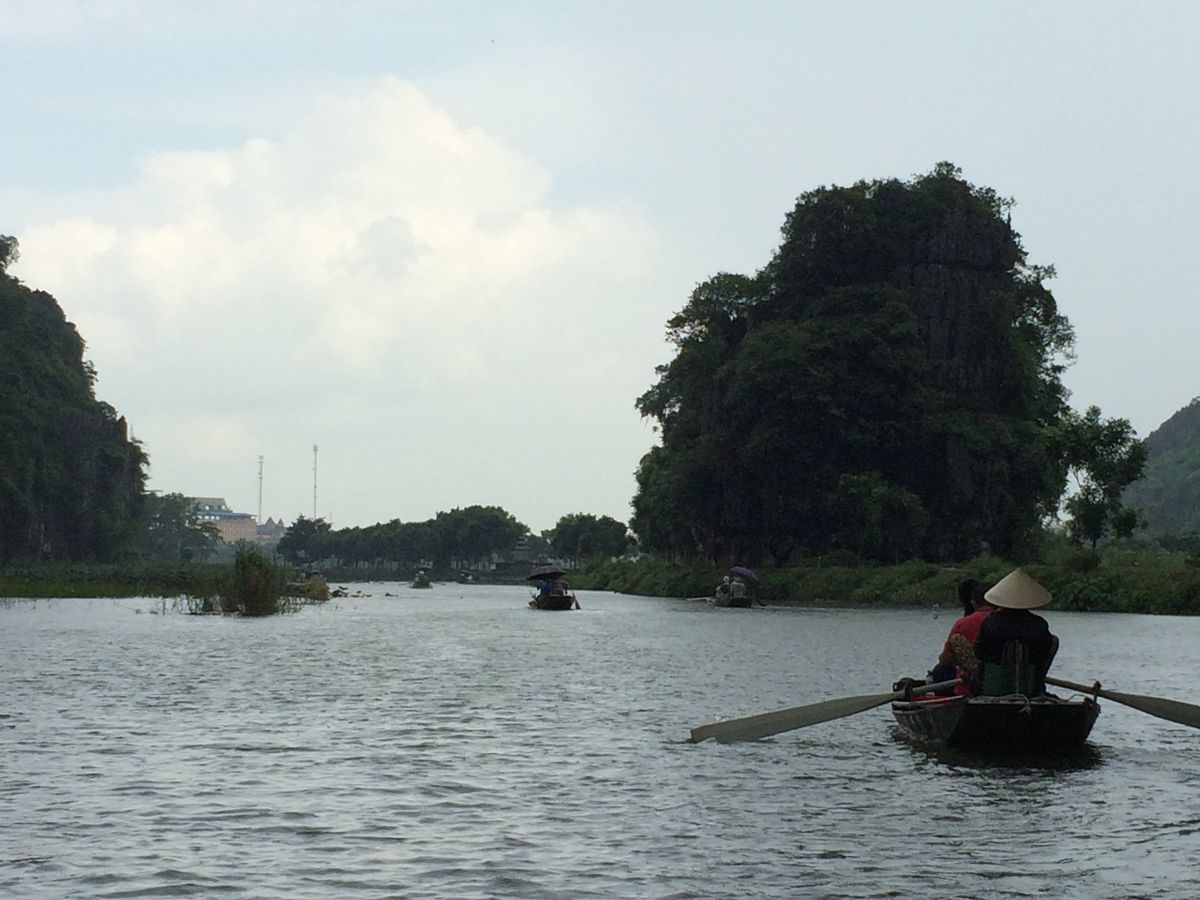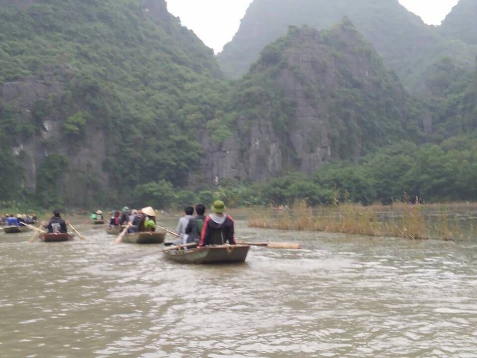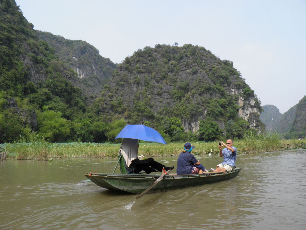 妻と二人で参加しましたが、天気も良く楽しい旅行になりました。特にタムコックの足こぎ舟の遊覧はとてものんびりと楽しめました。山々の景色と水田、時に洞窟を潜り抜ける変化は、ハロン湾以上に感じました。ただ、せっかく水牛に乗って写した写真も、タムロックでサイクリングから帰る英語グループを待っている間になくしてしまい後悔しきりです。ガイドも博識でホアルーの説明を詳しくしてくれました。