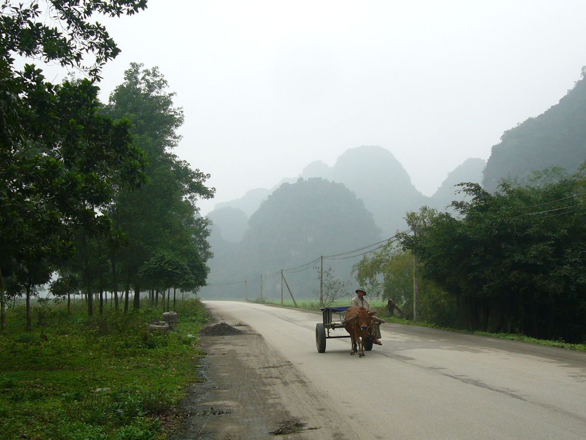 国道を南に2時間ほど走ると、山肌に石灰岩が目立つ。ホアルーは北部ベトナム王朝がハノイに移る約千年前に独立王朝があった場所。