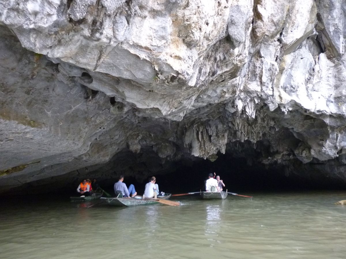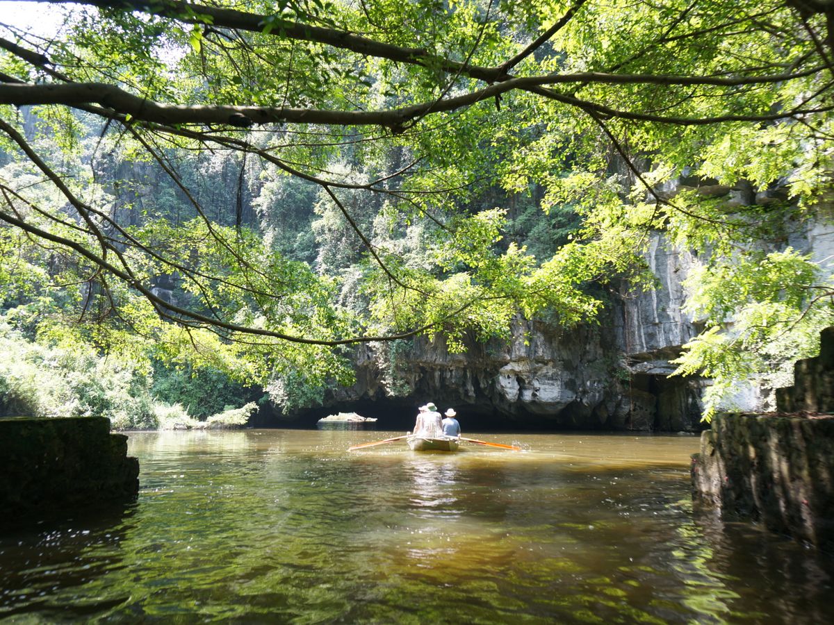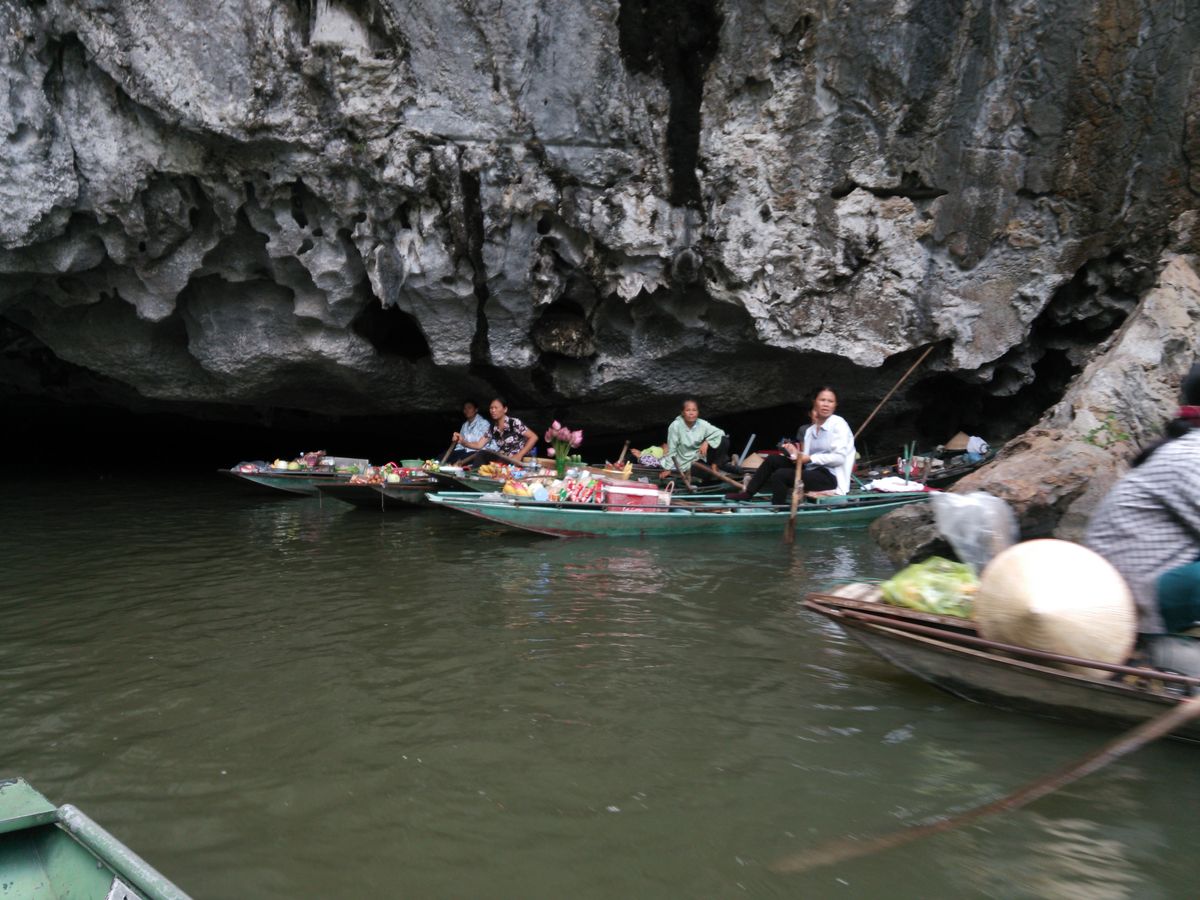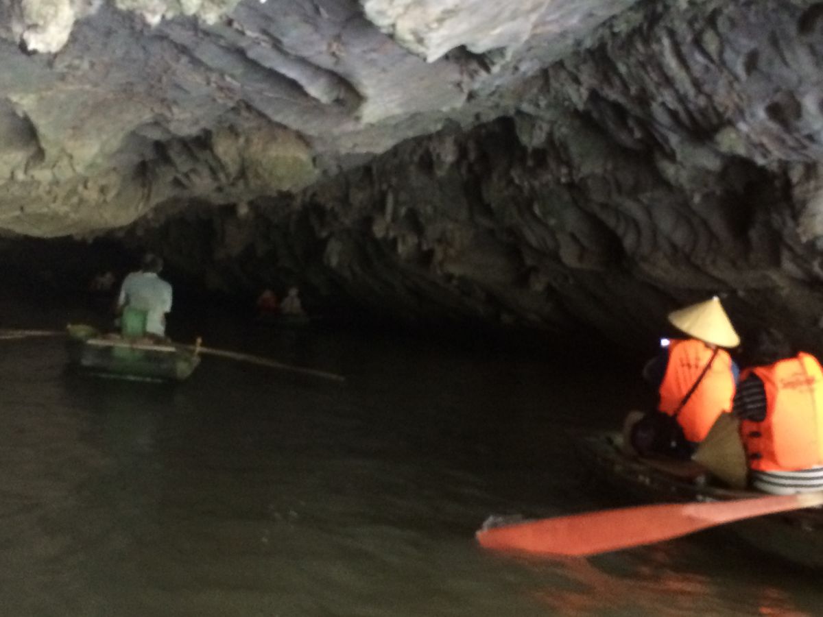 ブッフェの昼食のあと、陸のハロン湾、タムコックへ。ここは、石灰岩の奇岩渓谷を縫うように流れる河を、小舟で観光する。船頭は女性が多く、往復一時間半を漕ぎ続けるせいか、その大半の時間を両足で櫂る。誠にお見事な技だ。途中、鍾乳石が垂れる洞窟がいくつかあり、大きいものは百メートルもある。陸のハロン湾ということだが、ホアルーと共に2014年に世界遺産に指定されたという。一人でも、気軽に参加できるツアーだ。