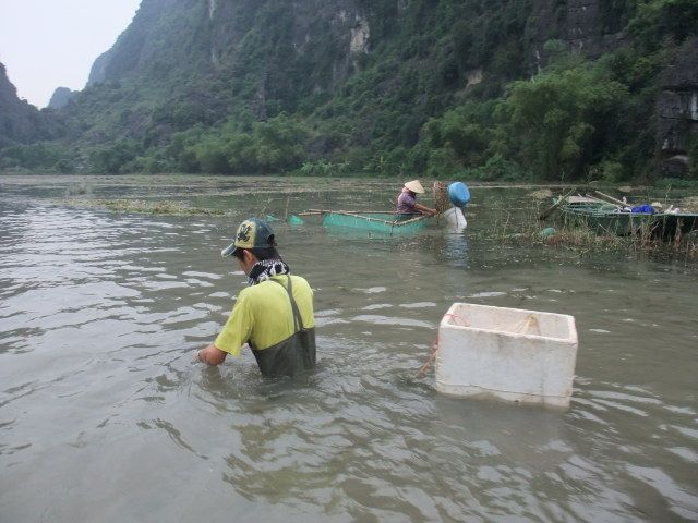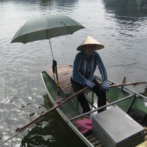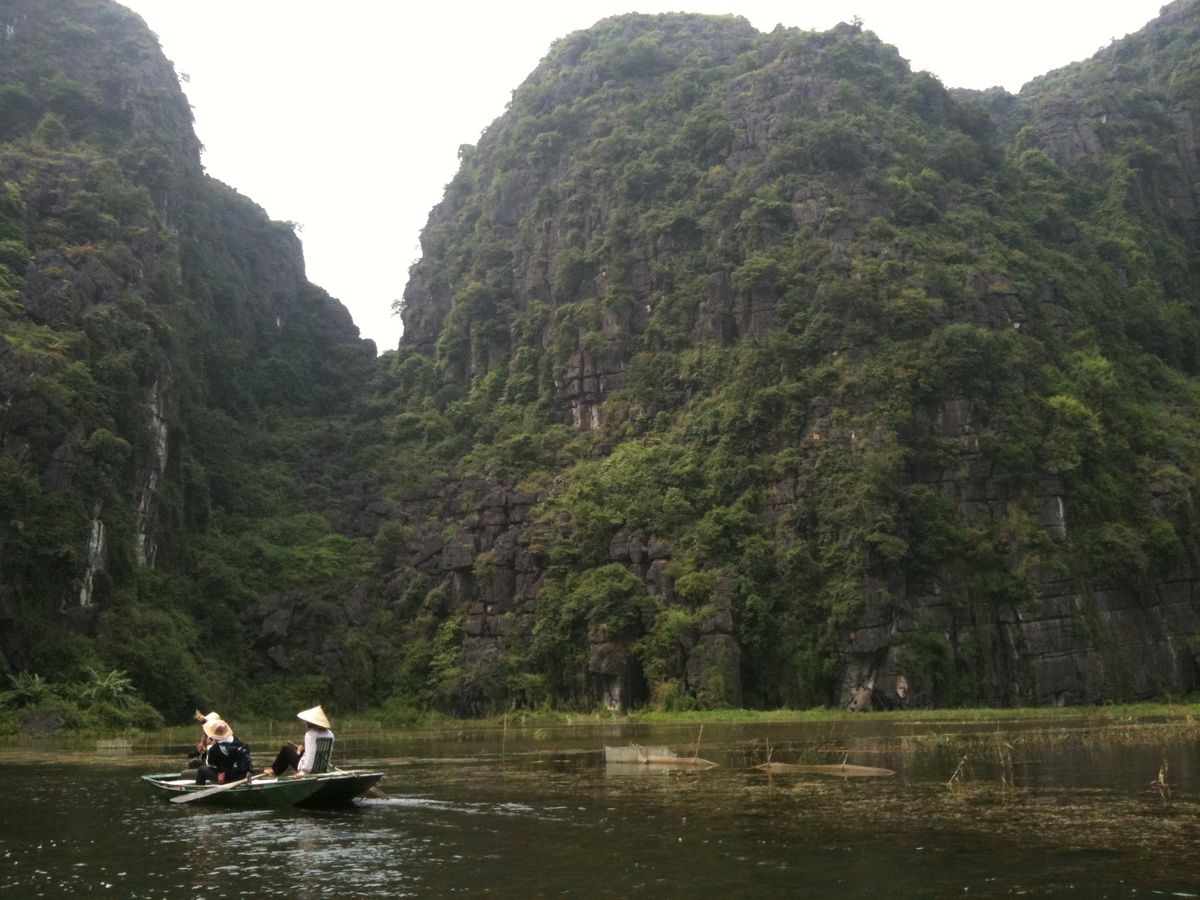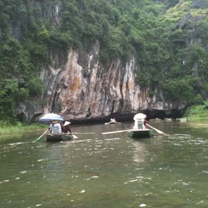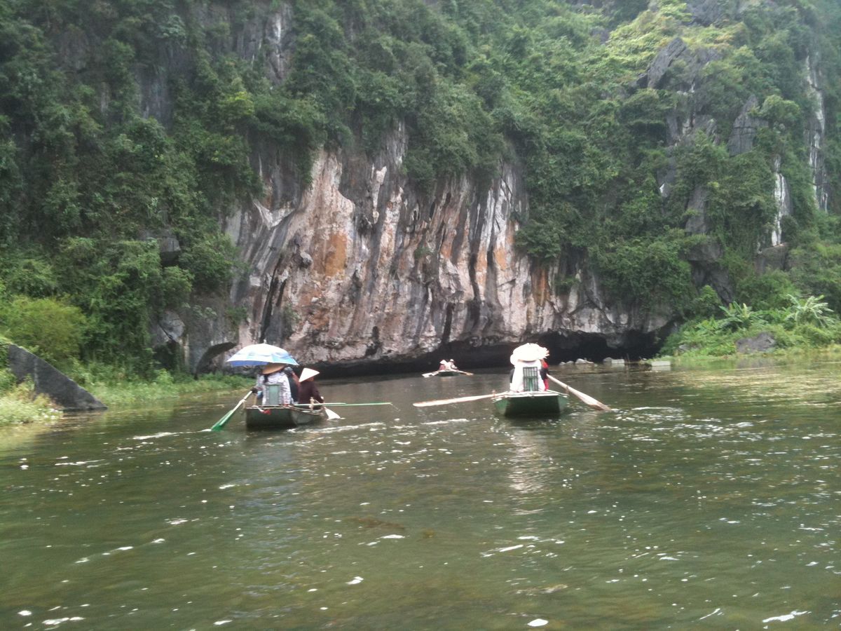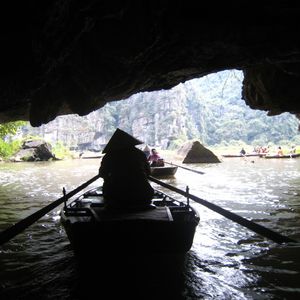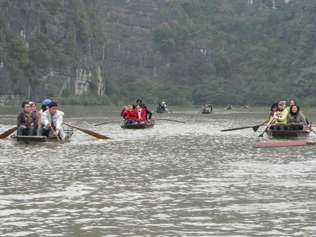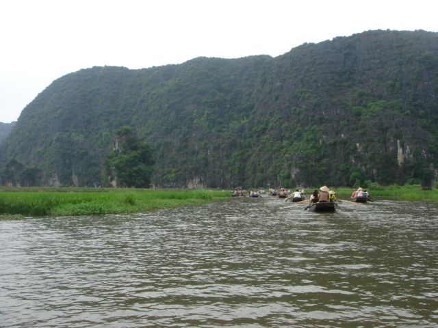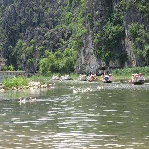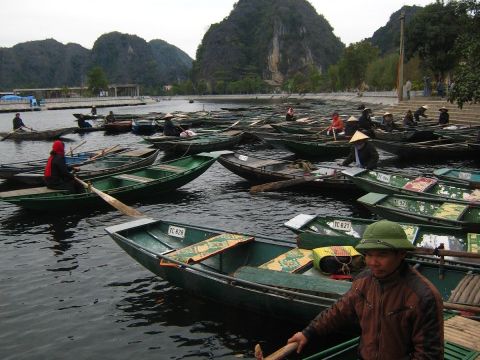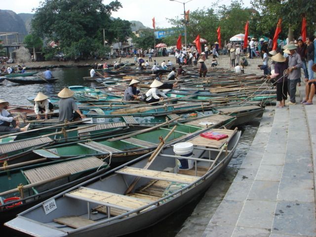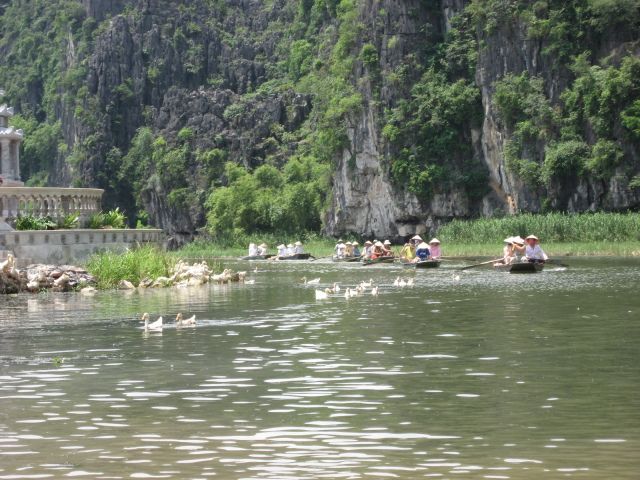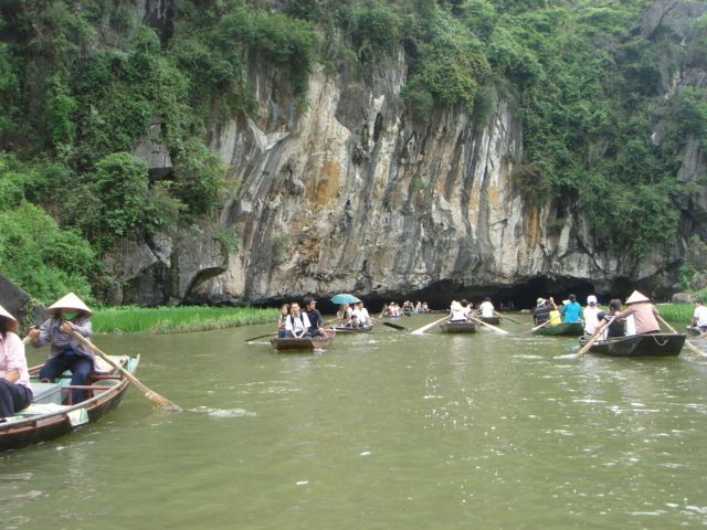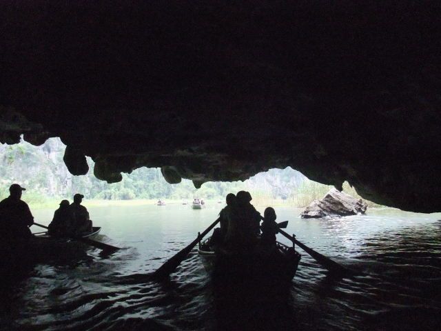 他の方の書き込みにもありますが、ハロン湾より、こちらがお勧め。両方行くなら、ハロン湾を先に、こちらを後にするのがいいでしょう。小舟での売り込みも買う必要はないので、その旨を示せば問題ないです。ただ長時間漕いでくれる船頭さんは疲れるだろうし、途中で飲み物を購入して渡したり、チップをあげるのは必要と感じました。チップは降りる間際に渡そうとして、お札を手にしたときに船頭さんに、とんとん とたたかれて、催促されているような感じがしたのは気分がいいものではなかった。自分から催促するものでは、ないでしょう、チップは。船頭さんが1人の場合があったり、2人の場合があったりすので、チップ用に小銭を準備しておいたほうがいいです。