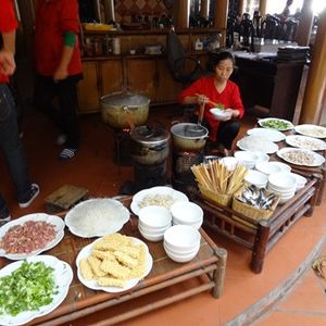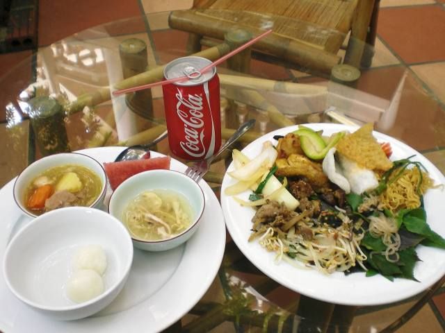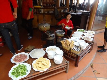 ランチは船着場のすぐ隣にあるレストランでバイキングでした。食べたことのないヤギの肉の料理やヤギ肉入りフォーを堪能。他にも結構種類あり。