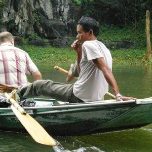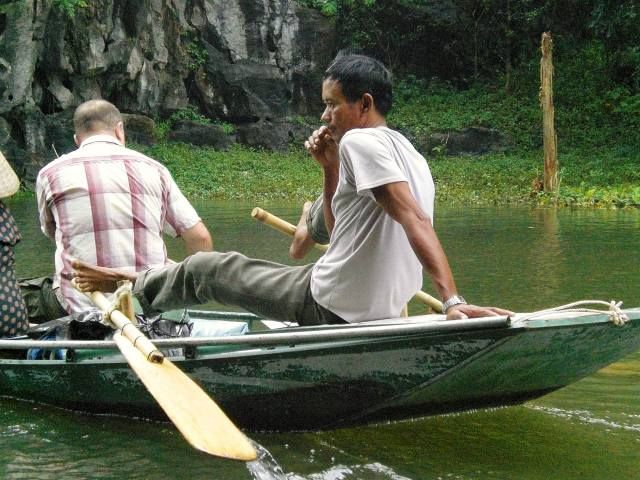 以前ハロン湾を観光したことがありますが、ここは陸のハロン湾と言われるだけあって似た景観が続きすばらしい.またボートで天井の低い3ヶ所の洞窟をくぐり抜けるなどの珍しい経験も出来、観光としては申し分ない.しかし、ボートでの折り返し帰路に、漕ぎ手から刺繍などの品物をしつこく押し売りされ、一艘のボートには2-3人しか乗っていないので逃げ場もなく非常に不愉快な経験をしました.見ていると他のどのボートでも全く同じシーンが展開されていました.結局何も買いませんでしたが、それ以後漕ぎ手のおばさん(2人)たちは口数がなくなり、帰着寸前にはチップの要求がありました.Alan1の手配された現地催行会社のガイドから事前に言われていた1人1ドルのチップ(3人なので3ドル)を出しましたが、2人で分けられないからもう1ドル出してくれとこれまた執拗に請求されました.これも拒否して何とか帰り着きましたが、後味の悪いものとなってしまいました.折角のすばらしい景観だったのに大変残念なことでした.