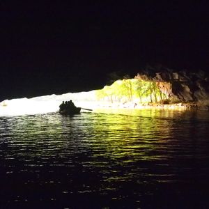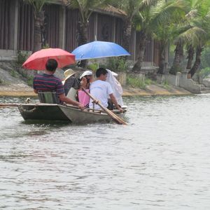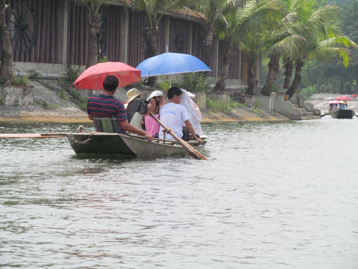ハロン湾の大きなクルーズ船とは違い、小さな小船での川くだりも