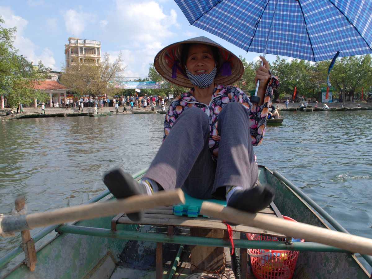 私たちは3名乗船だったためか、メインの漕ぎ手のおばさまのほかに1名助手らしき