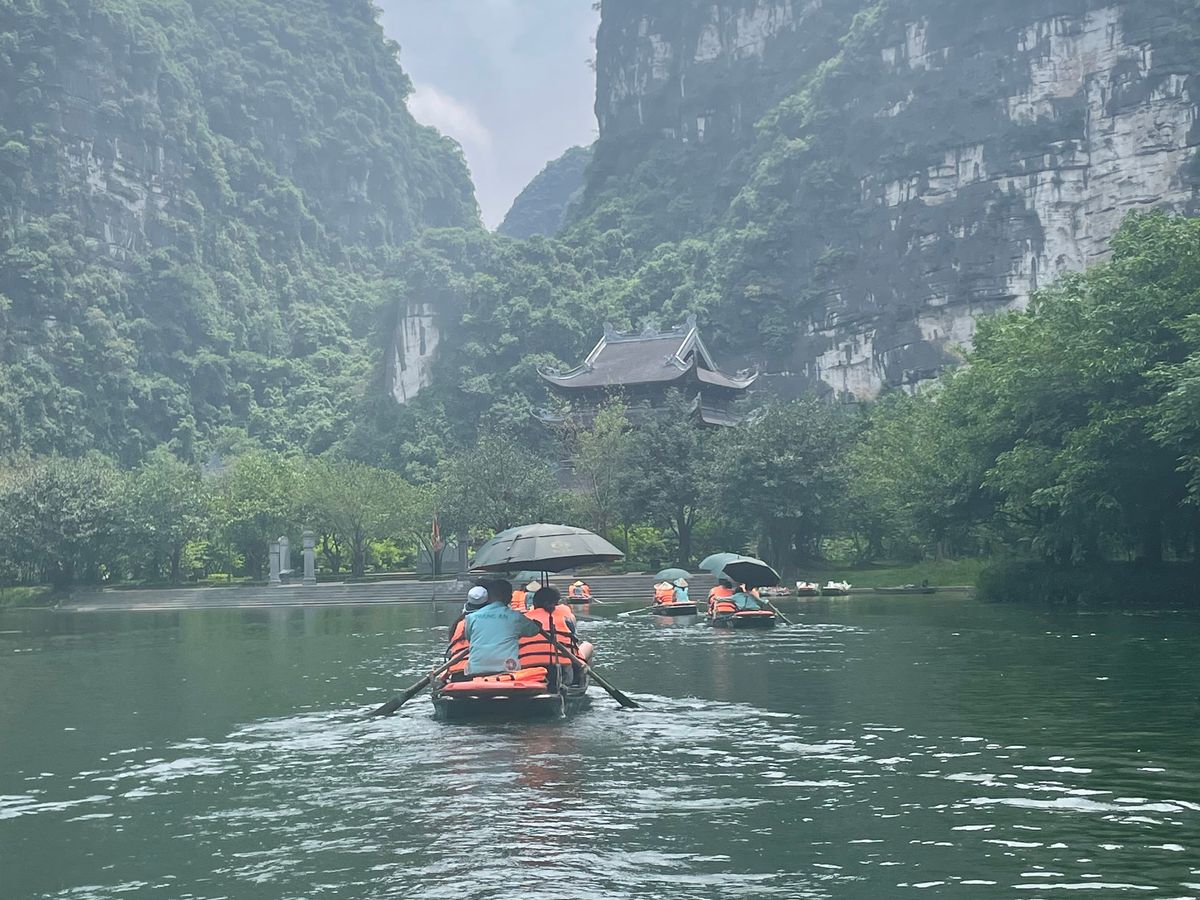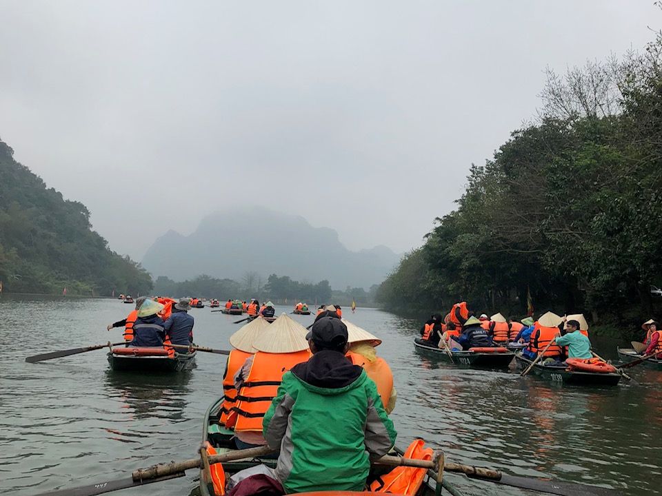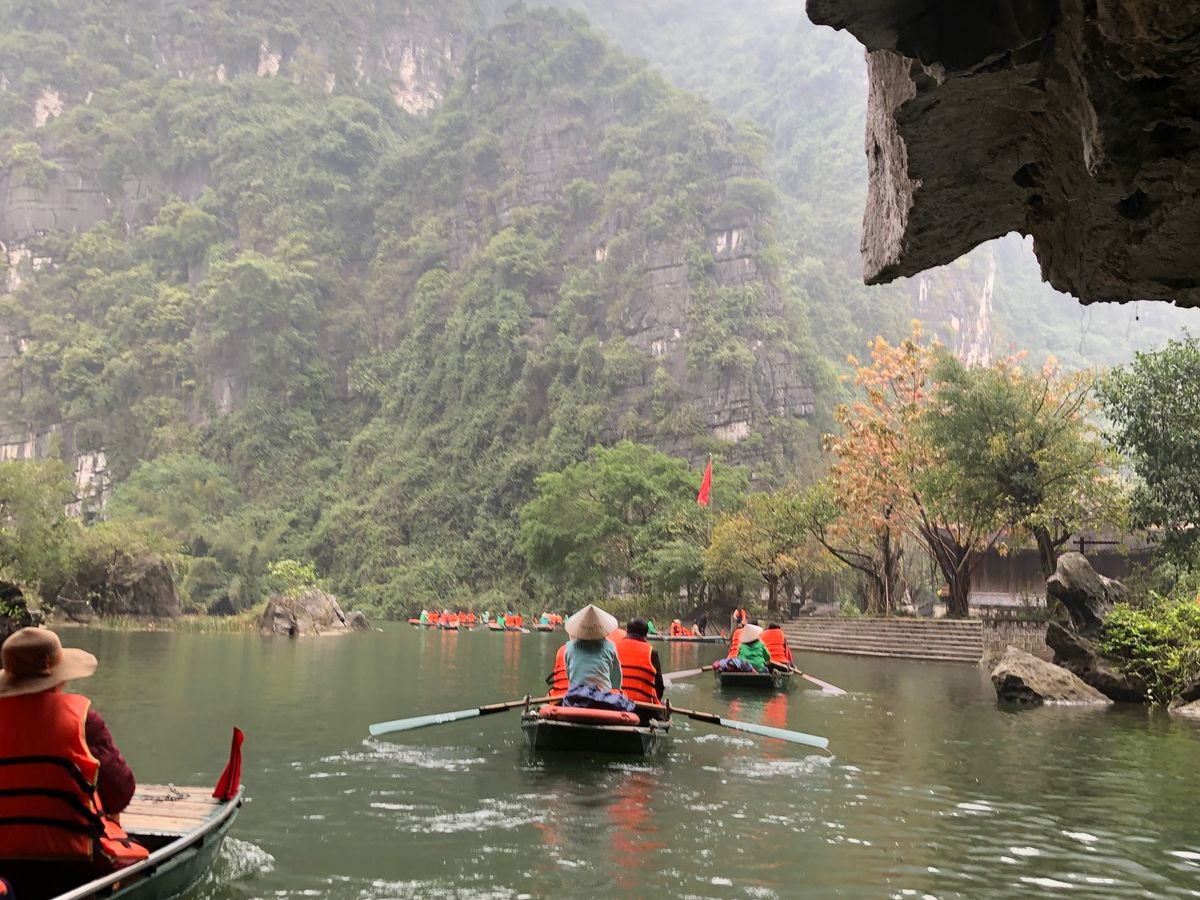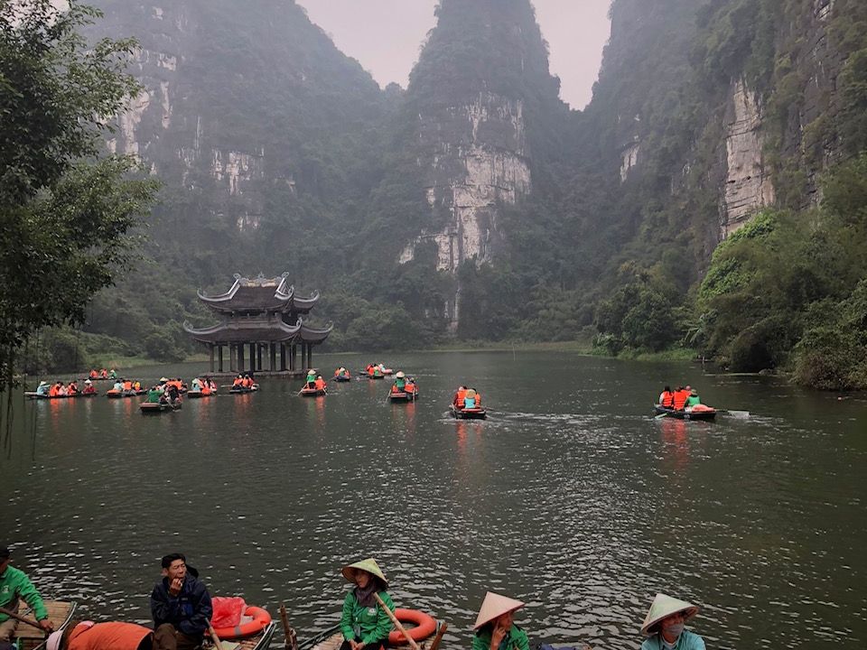 メインのチャンアンの舟下り。人(舟)は多いものの、モーターボートではなく手漕ぎであり、静かで自然の音を満喫できます。風情あり、鍾乳洞の中を通る迫力あり、囲まれた山々の美しさあり、とても満足。