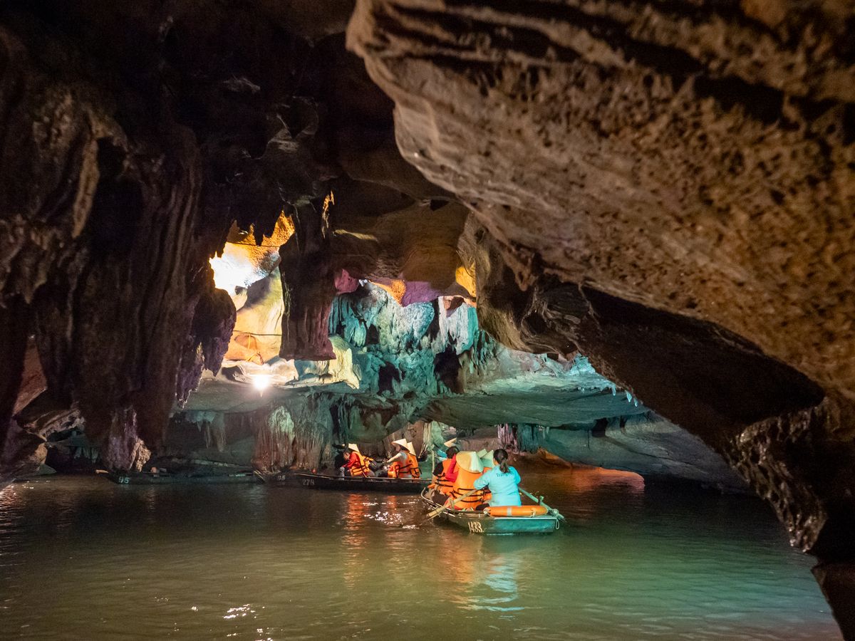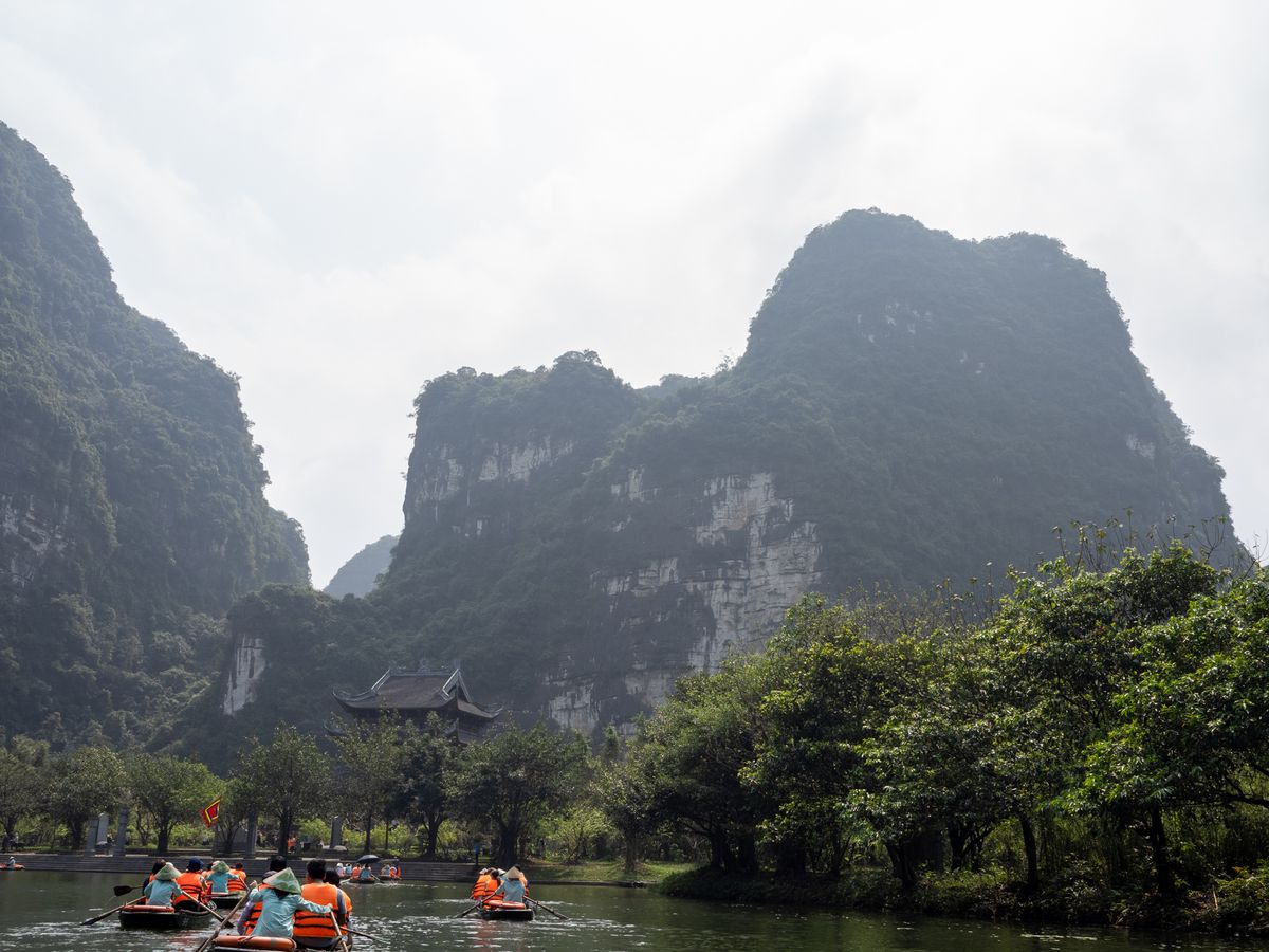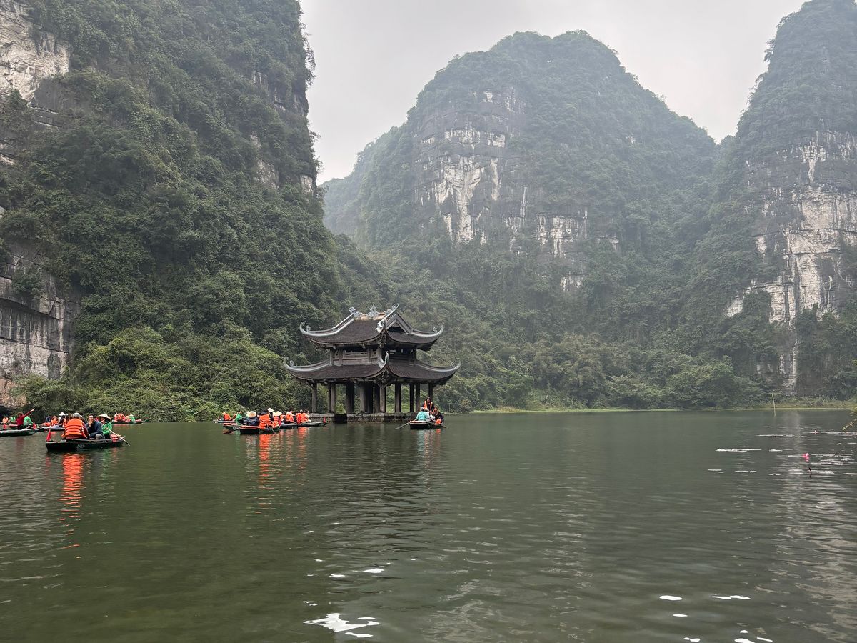 メインのチャンアンの舟下り。人(舟)は多いものの、モーターボートではなく手漕ぎであり、静かで自然の音を満喫できます。風情あり、鍾乳洞の中を通る迫力あり、囲まれた山々の美しさあり、とても満足。