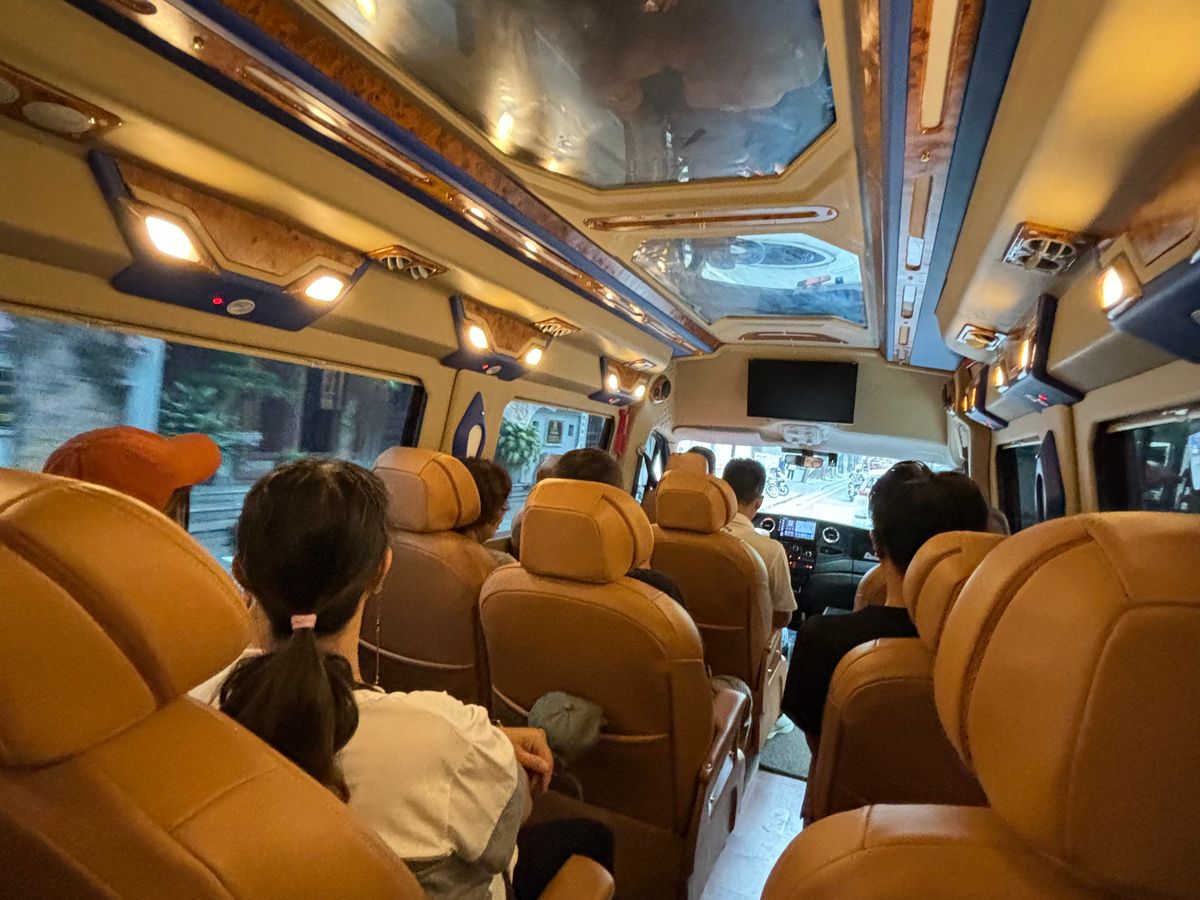 綺麗なステーションワゴンでの移動でした。2歳の娘連れでしたので、(座席からトランクに手が届くので)荷物が直ぐに取り出せるワゴンタイプは非常に有難かったです。運転手さんと会話はありませんでしたが、乗り降りの際はドア付近に来ていただき娘の事を気にかけてくれました。運転もとても安心出来る安全運転をしてくれました。ツアーガイドのクエンさん(女性)は日本で働いていたこともあるとのことで日本語も聞き取りやすかったですし、道中での私達の質問にも答えていただき日本語ツアーにして良かったなと思っております。目玉であるチャンアン複合景観の小舟でのアクティビティはとても暑いです。傘は貸してもらえますが、水分(と日焼け止め)は必要ですのでお気をつけください。約2時間のアクティビィティ途中には買えないと思います。私達は夫婦2人(2歳の娘は座席数に入れないようでした)でしたので乗客4人乗りの船に乗り合わせにすることにしました。相席者はベトナム人の20歳前後の女性でしたが写真映えする箇所で一生懸命色々なポーズで写真を撮っており気づいたら2時間で終わる小舟でのアクティビィティが2.5時間かかっておりました。その子達は娘にも良くしてくれ私達夫婦は若いって良いね。くらいで何も思いませんでしたが、次の予定がある方や、さくっとアクティビィティを終わらせたい方は混載便では無くプラス料金をチケット売り場で支払ってプライベート船にすることをお勧めします。