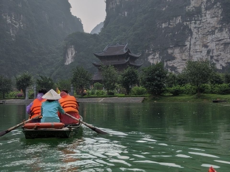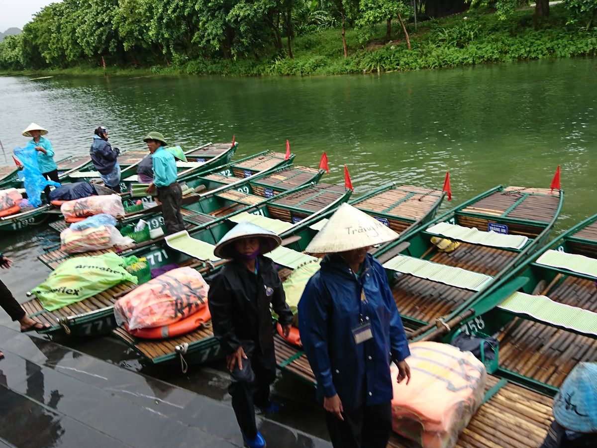 この日は,天候が心配でした。ガイドさんによると朝は大雨でだったとのこでしたが,雨が上がりました。曇り空でしたが傘・カッパを使わずに済みました。朝の迎えが少々遅れ不安でした。そのためか,古都ホアルー観光は少々急ぎ足。写真を撮ることが十分できませんした(´;ω;`)ウゥゥ。龍の彫刻などじっくり写真に収めたいものが多くあったのですが,少々残念です。けれども,その後のLaunchは満足!ヤギ肉は,美味しくないよな体験談がありましたが,豚肉のようで臭みもなく,量も多く満足。何より驚きは夫婦2組でしたが,4人シェアの料理提供でなく,1組ずつ。2人で余るほどの食事でした。そして,いよいよチャンアン観光。1000人ほどの船漕ぎの従業員がいるとの話にはびっくりですが、木曜日の平日のためか並ぶことなく船にに乗ることにできました。とにかくビックの光景。長い年月,自然の壮大さを感じることができました。日本なら,要ヘルメットのような洞窟も体を伏せてそのまま前進。晴れていたら,もっと最高だったことでしょう。それでも,今までに見たことのない景色に大満足です!なまりのあるEnglishでいしたが,船を漕ぐ方が丁寧ガイドしてくださりました。1時半ほど船での観光,時を忘れ最高でした。ほぼ時間通りのツアーでした。