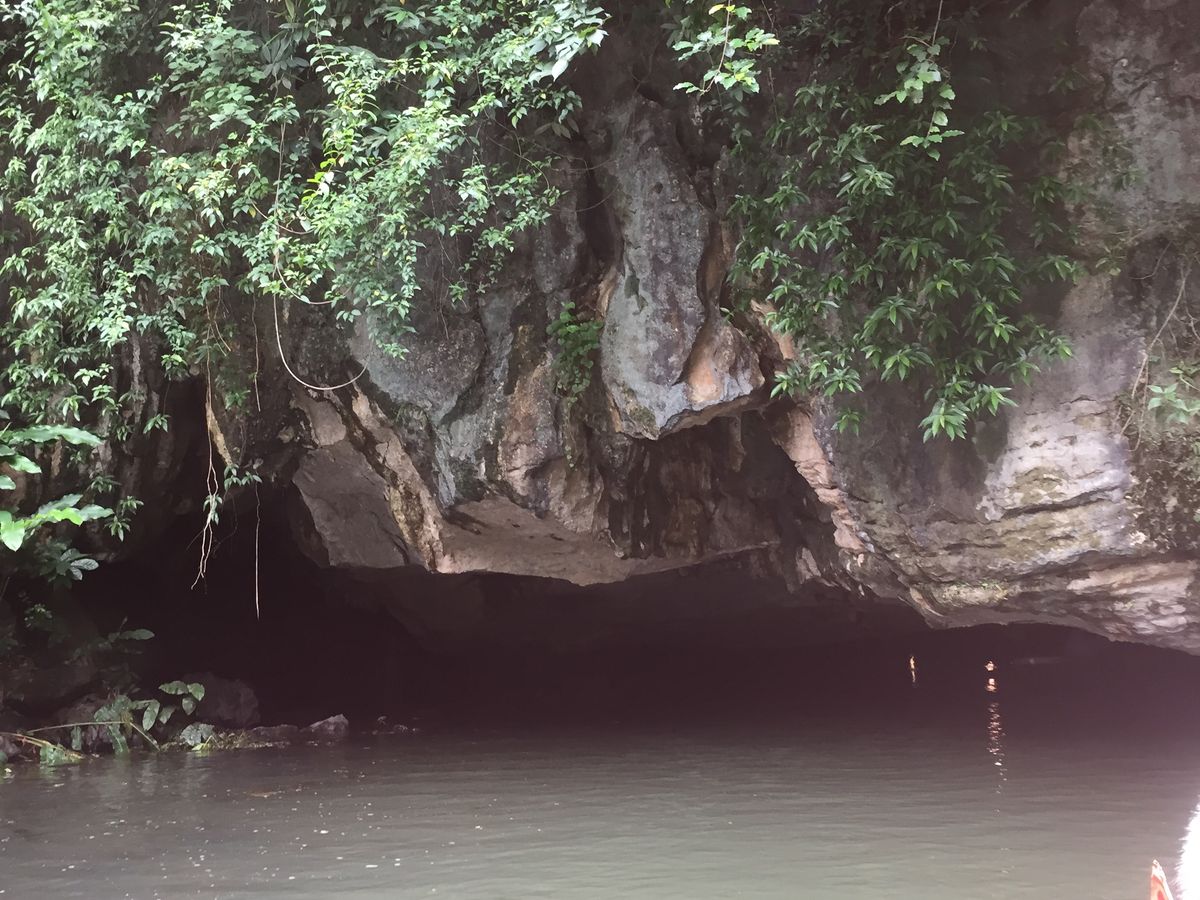 小舟クルーズは約2時間、炎天下で暑かったですがいくつも洞窟の中を通過し日本ではできない体験でした。1週間前くらいに台風が通過したため水量が多くなっていたこともあり、洞窟を通過するときは頭を下げていないとぶつかってしまうくらい狭くなっていましたがそれもスリルがあり良かったです。