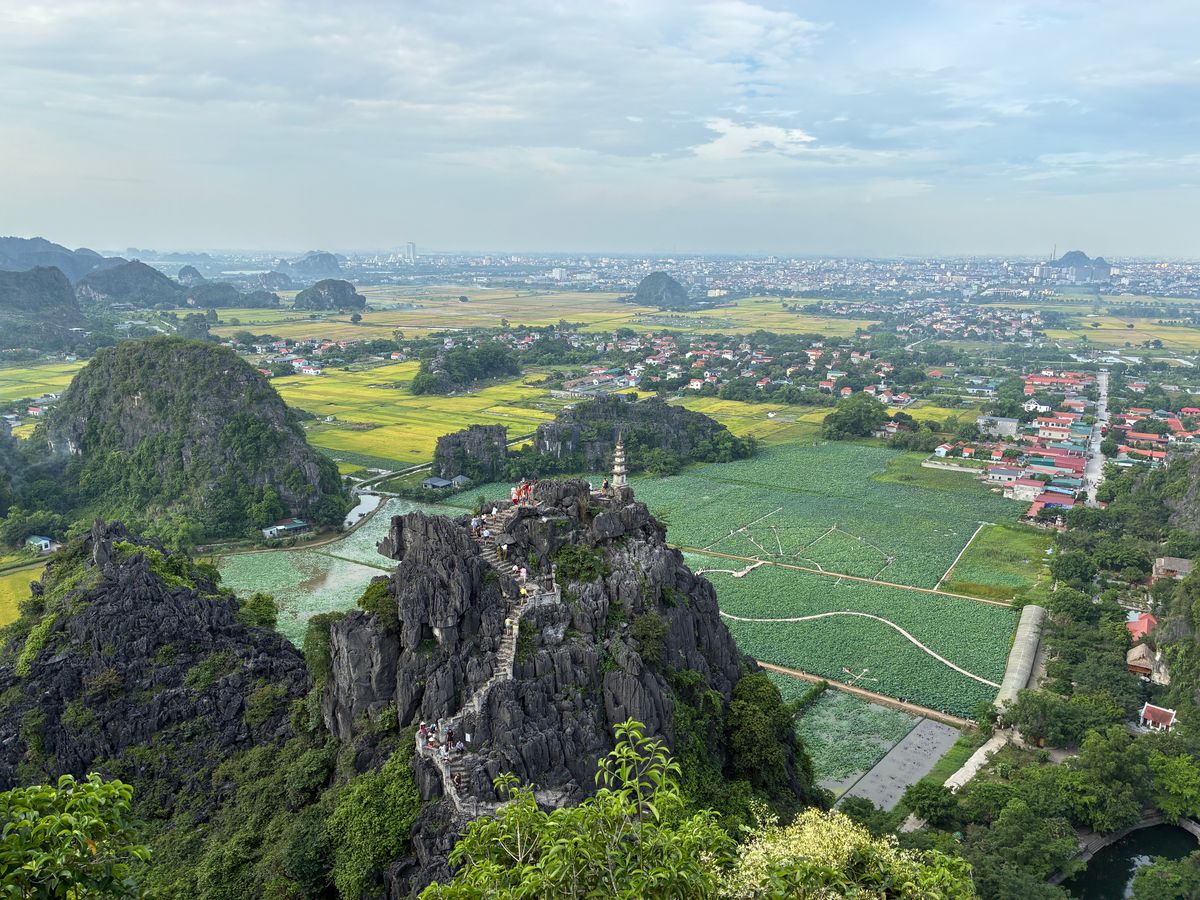 朝8時半にガイドのスさんにホテルに迎えにきていただきました。ホアルーに着いたのが10時過ぎくらい。古都の歴史や街並みを丁寧に案内していただきました。とても暑い日だったので(40度オーバー)水牛はスキップさせていただいてちょっと早めのランチをいただきました。ニンビン料理は日本人にも合う味付けです。山羊の肉がビールととても合いました。食後は車でニンビンに移動。手漕ぎボートに乗って(ガイドさんはお留守番)川下り。娘と僕の2人だけだった、かつボートを漕いでいただいたおじさんがとてもパワフルで、通常2時間近くかかるルートを30分ほど早く回ることができました。とても暑い日だったので正直助かりました。途中のフォトスポットでは丁寧に何枚も写真を撮っていただいて大満足。おじさんには2人分 30k Dong (600円くらい)のチップをお渡ししました。生活がかかってるのでここはきっちり払いたいところです。ハノイに戻る途中スさんにおすすめのスパとブンチャーのお店を聞きつつ4pmくらいにはホテルに戻りました。大満足の1日でした。