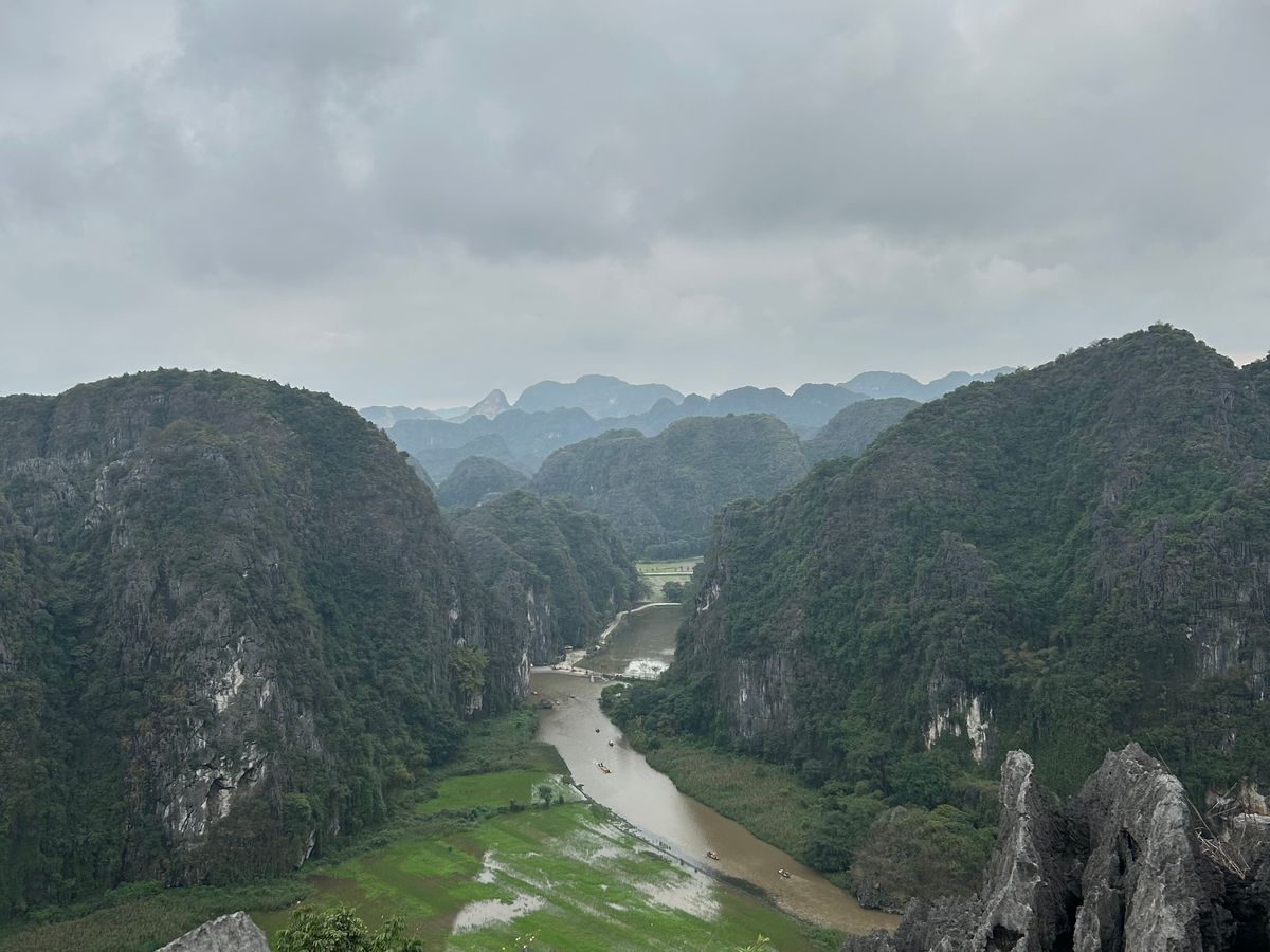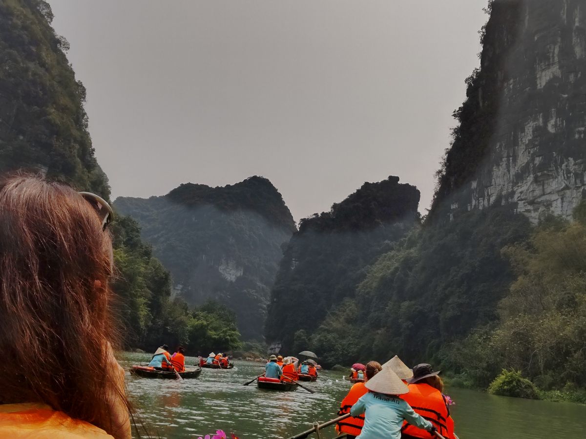ハロン湾とチャンアン行きで迷いましたが、チャンアンを選択して本当に良かったです。天気は曇りで時々小雨。景色がどんよりしていたのでサイクリングはどうなのかなと思っていましたが、景色を見ながら走るのはなかなか爽快。チャンアン川下りも小舟に乗って約1時間、次々に変わる景色に飽きることなく楽しめました。ムア洞窟の500段は人が多すぎて頂上はごった返していましたが、景色もよく晴れていたらと思うとそれだけが残念。