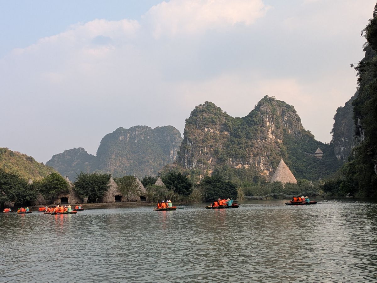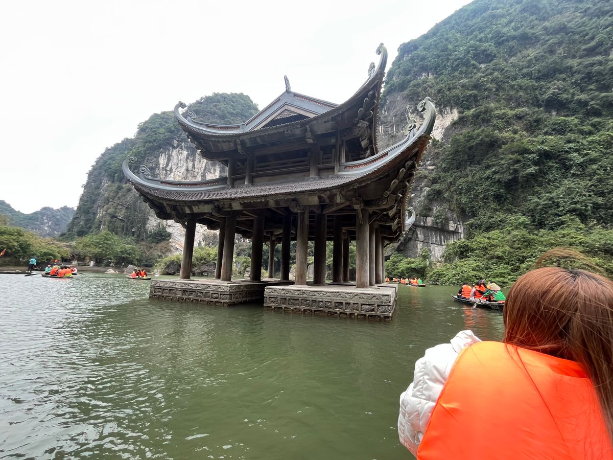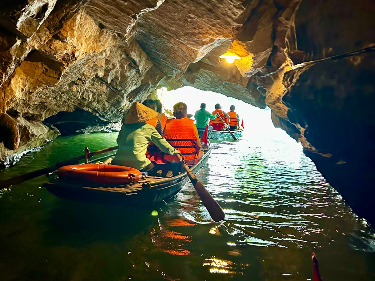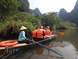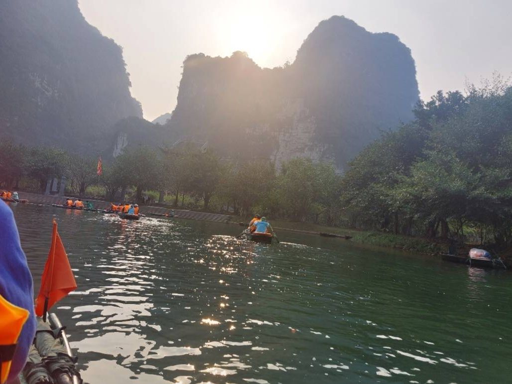 豪華なリムジンバスで現地まで行き、最高の景色を楽しみながら、おばちゃんの漕ぐ小舟に1時間弱揺られる。鍾乳洞があったり、奇岩に見とれているうちにあっという間に終わりました。サイクリングしながら、お寺を見学し、食事も昼夜ついてコスパが素晴らしいツアーだと思います。特に夕飯に食べたおこわがとても美味しかった!ガイドさんも親切でとても良かったです。