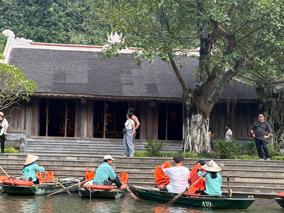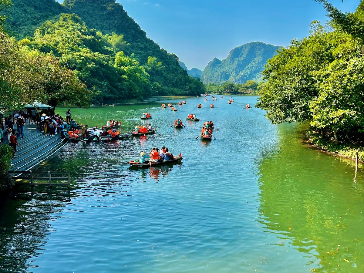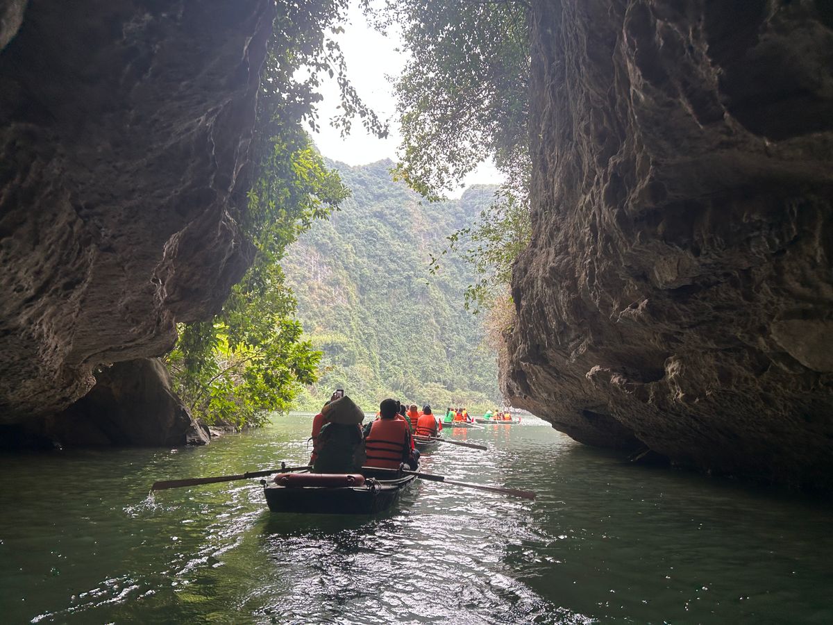 豪華なリムジンバスで現地まで行き、最高の景色を楽しみながら、おばちゃんの漕ぐ小舟に1時間弱揺られる。鍾乳洞があったり、奇岩に見とれているうちにあっという間に終わりました。サイクリングしながら、お寺を見学し、食事も昼夜ついてコスパが素晴らしいツアーだと思います。特に夕飯に食べたおこわがとても美味しかった!ガイドさんも親切でとても良かったです。